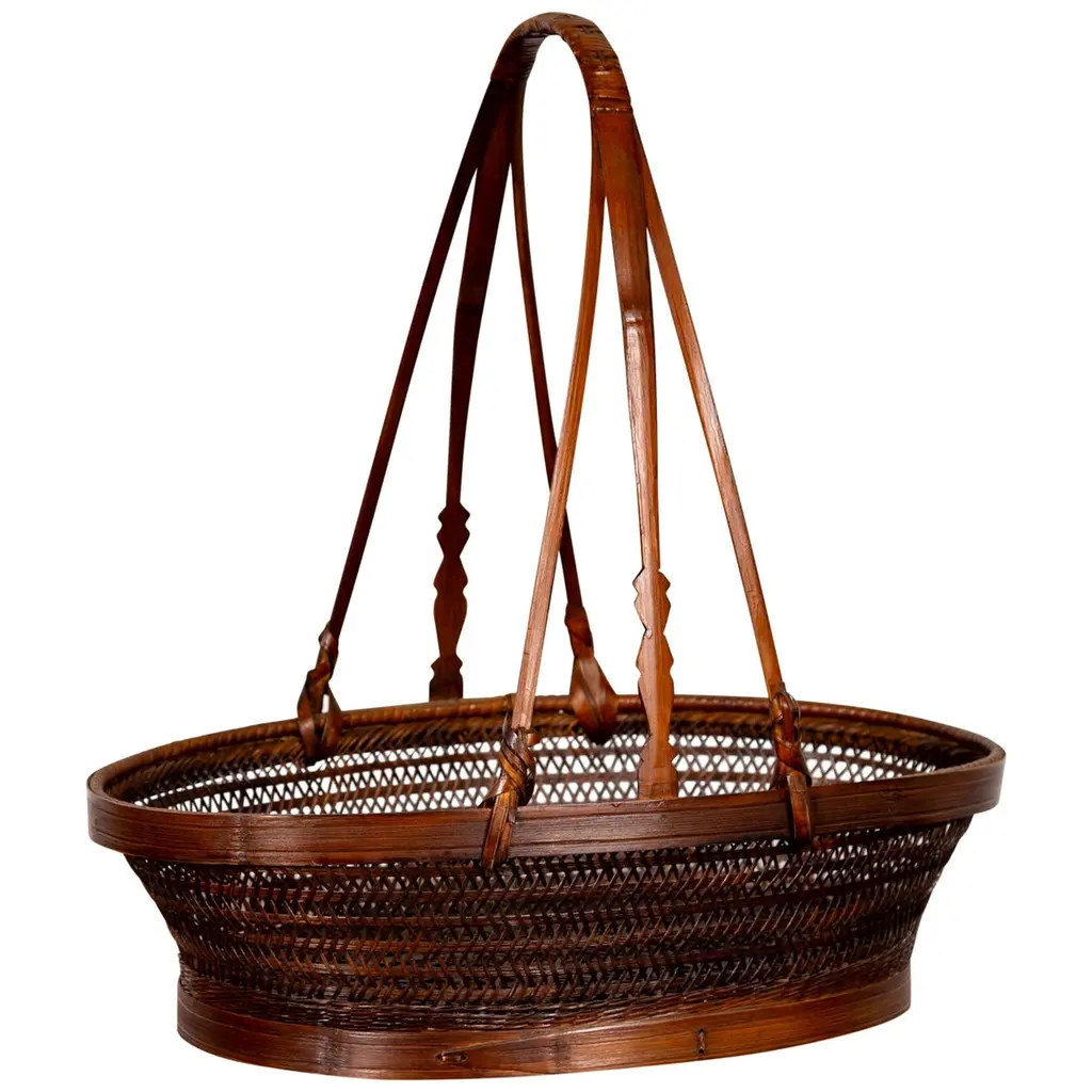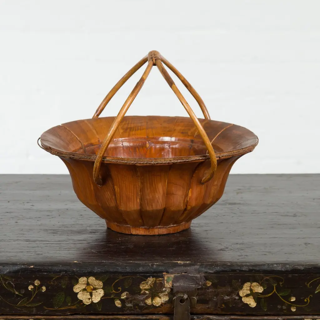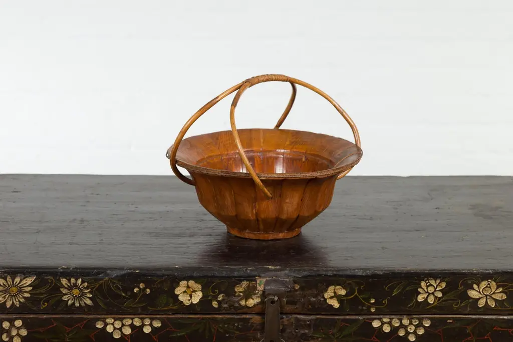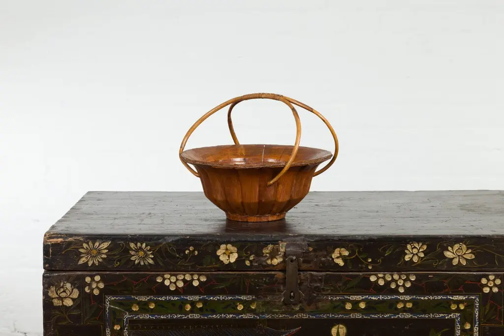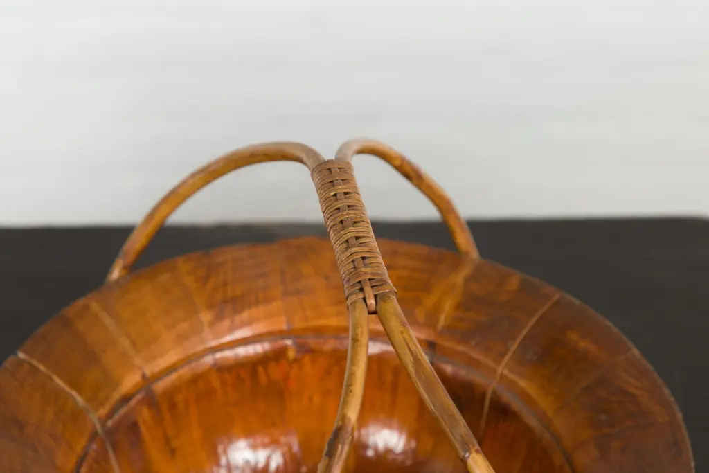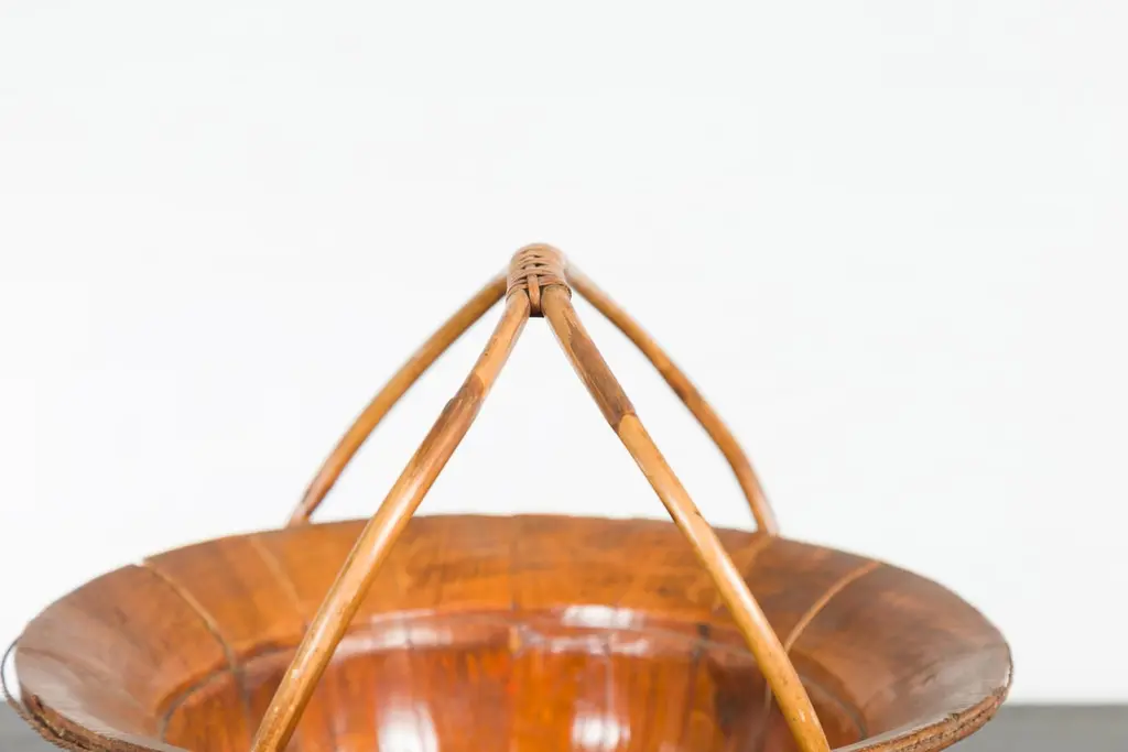 Late Qing Dynasty 1900s Varnished Bamboo Basket With Large Handles