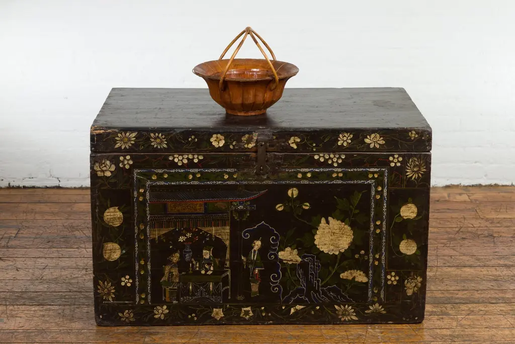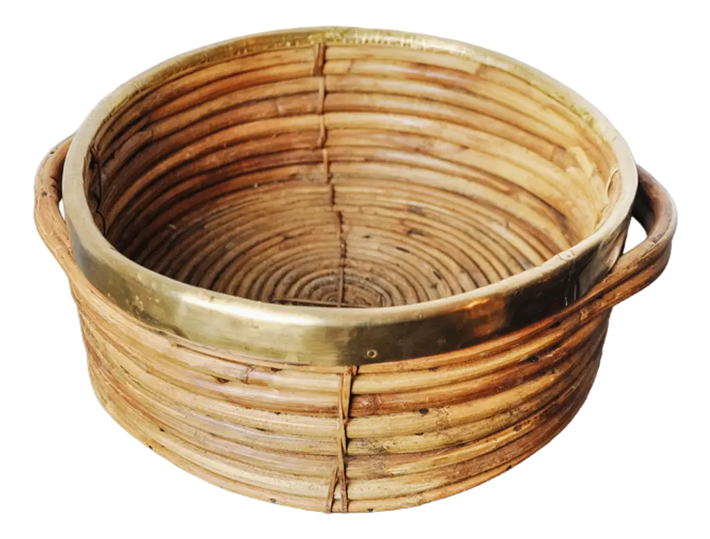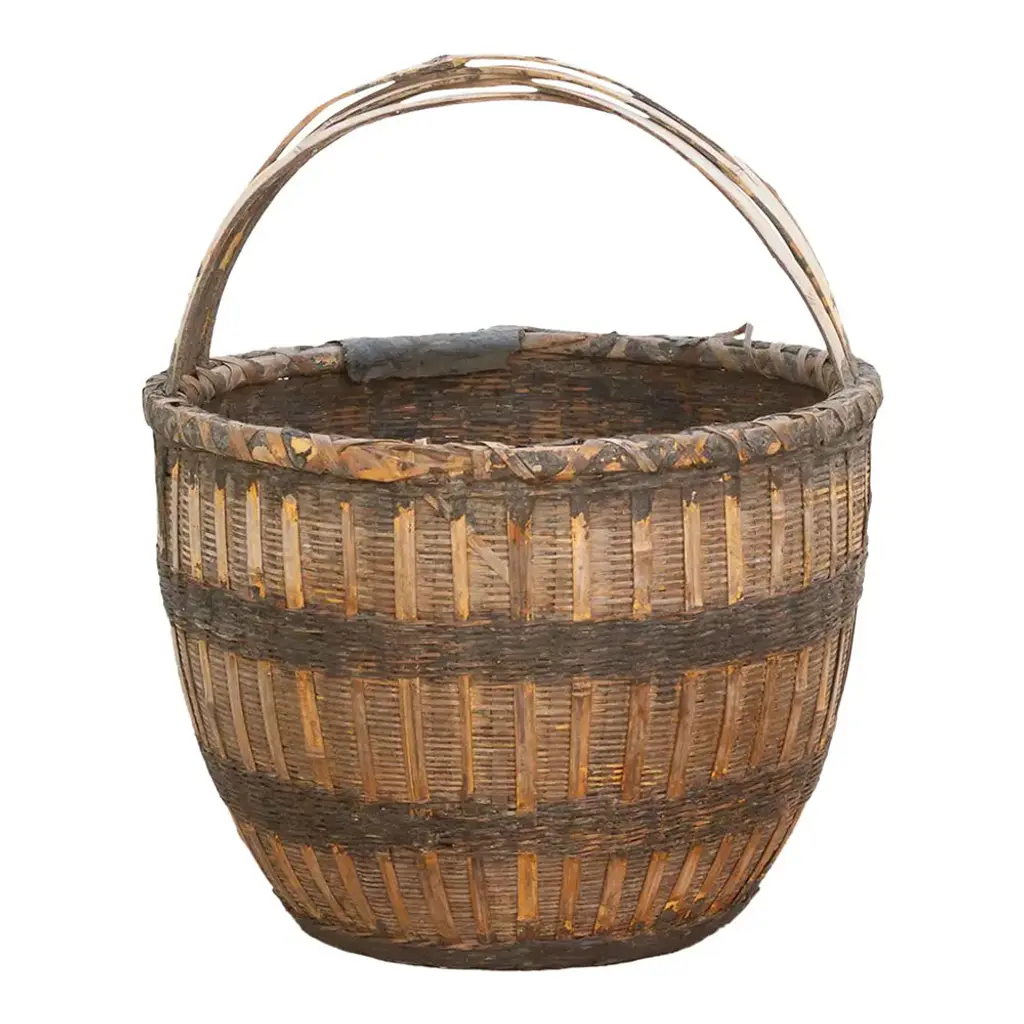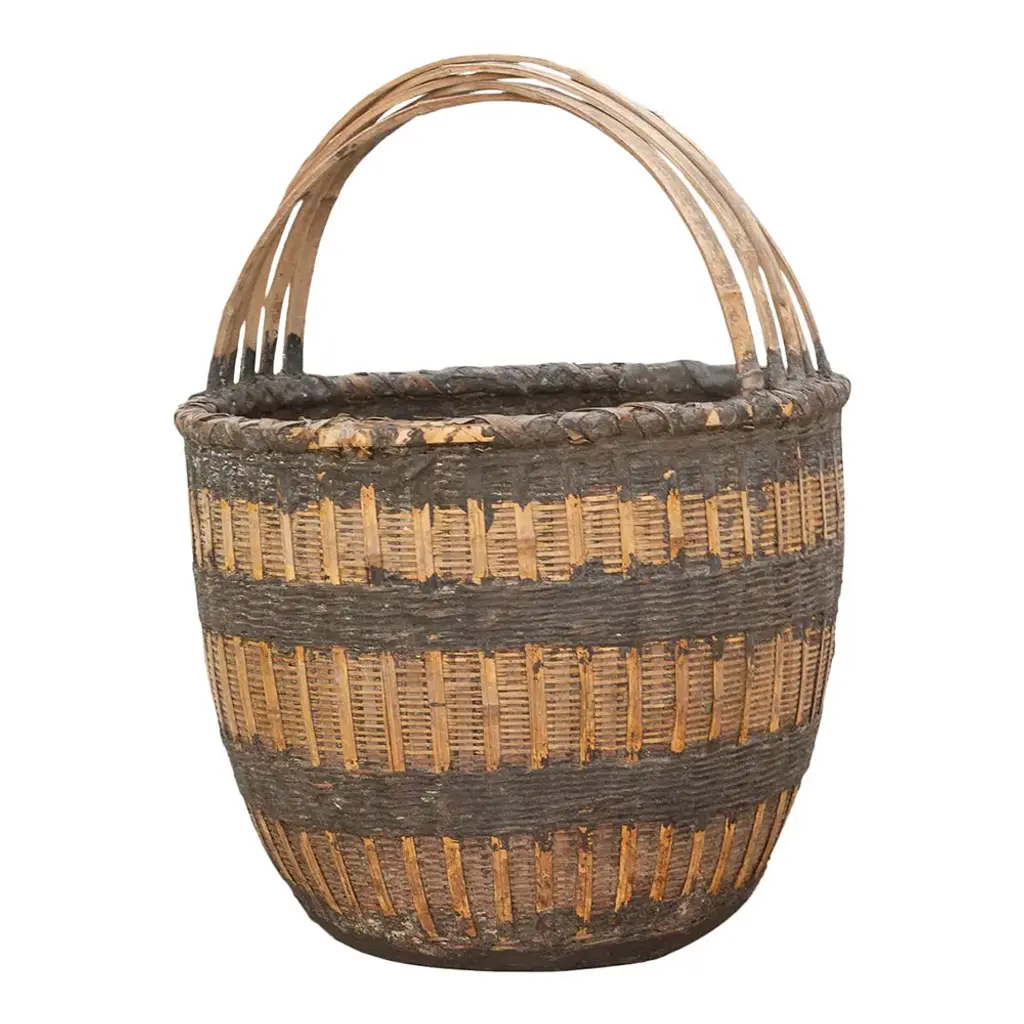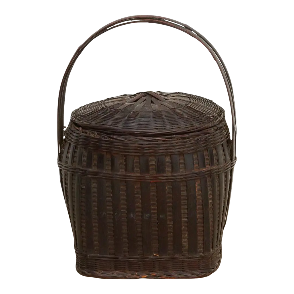 Late Qing Dynasty 1900s Varnished Bamboo Basket With Large Handles