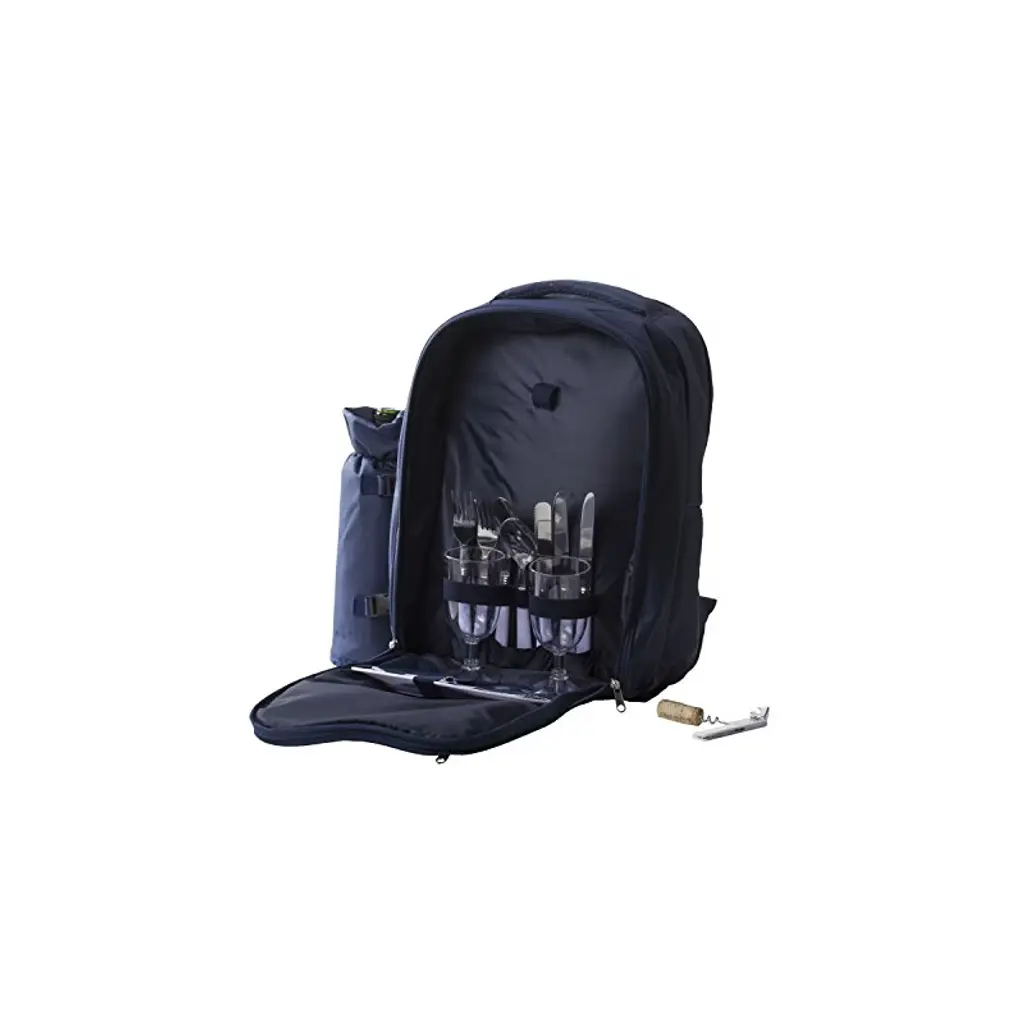 Lexi Home Insulated Navy Picnic Basket Set Backpack Cooler (Set For 2)