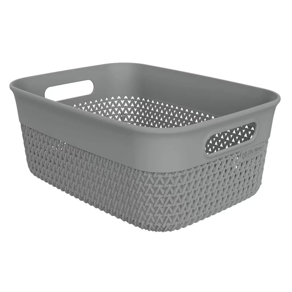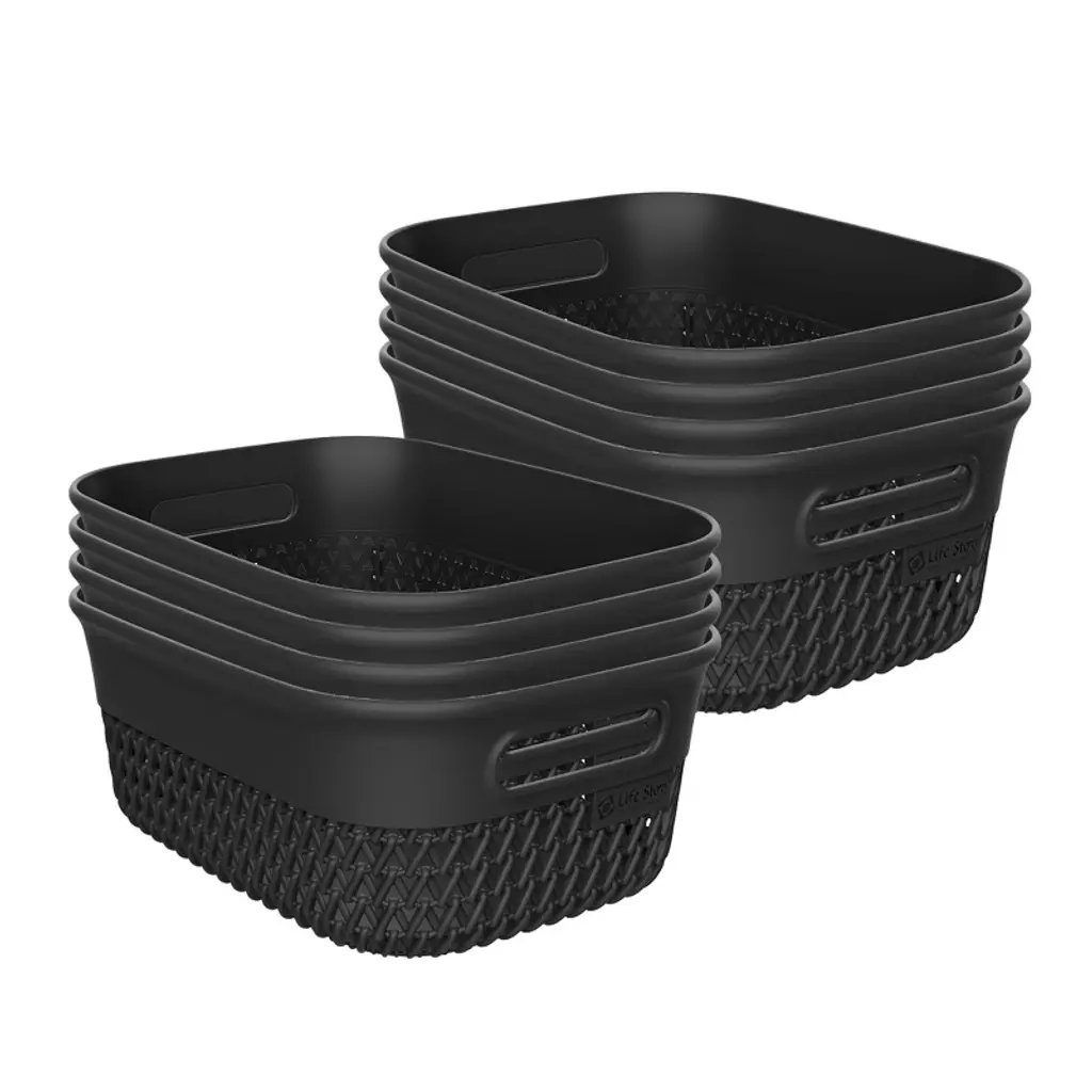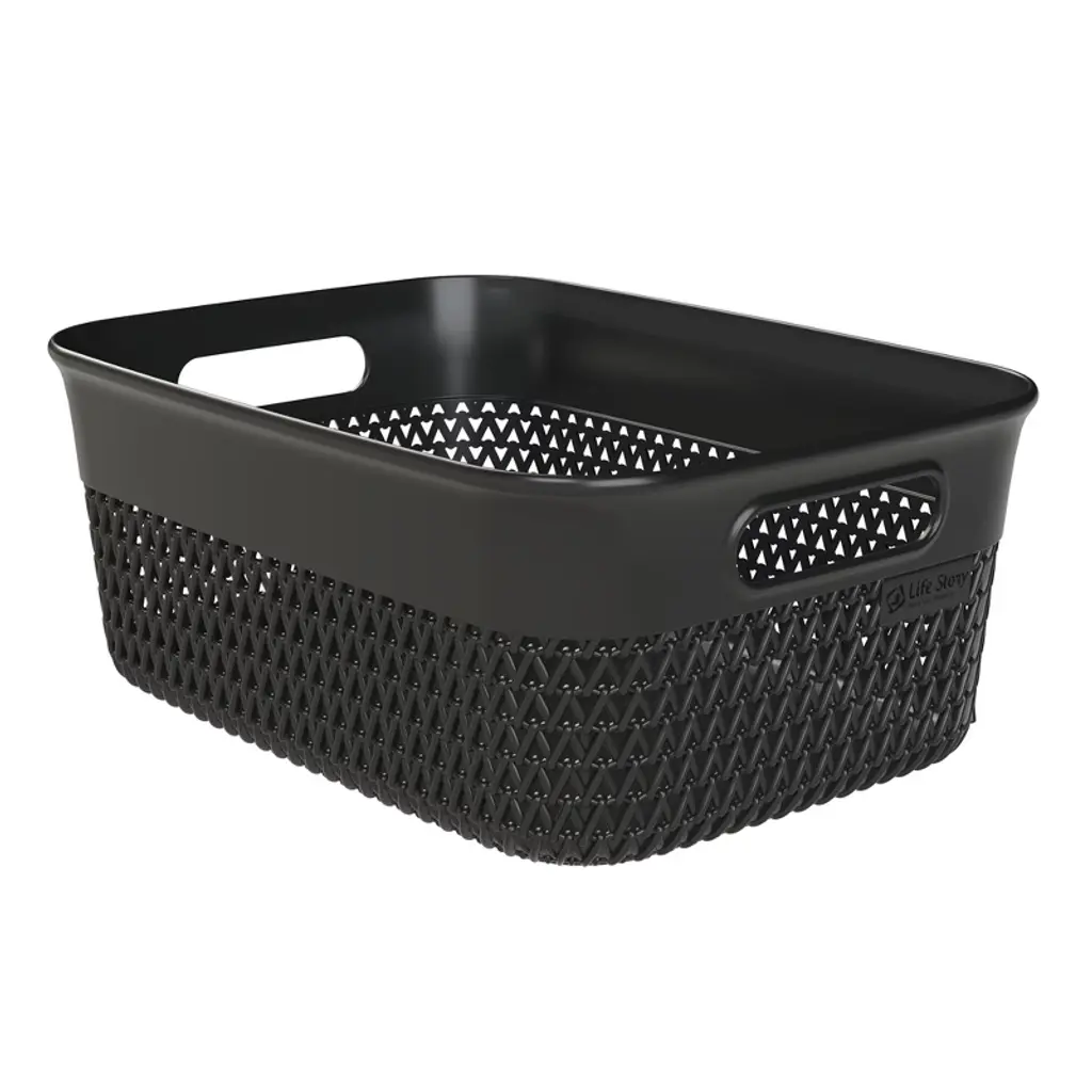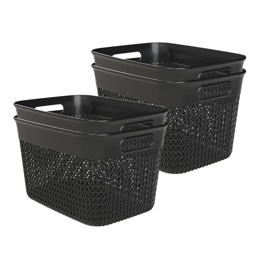 Life Story Extra Large Storage Basket, Decorative Plastic Home Organizer, Lightweight Versatile Tub With Built-in Handles, 26 Quart, Black, 4 Pack