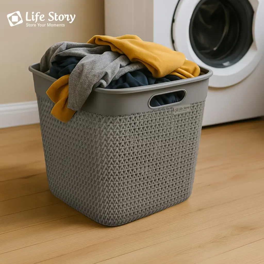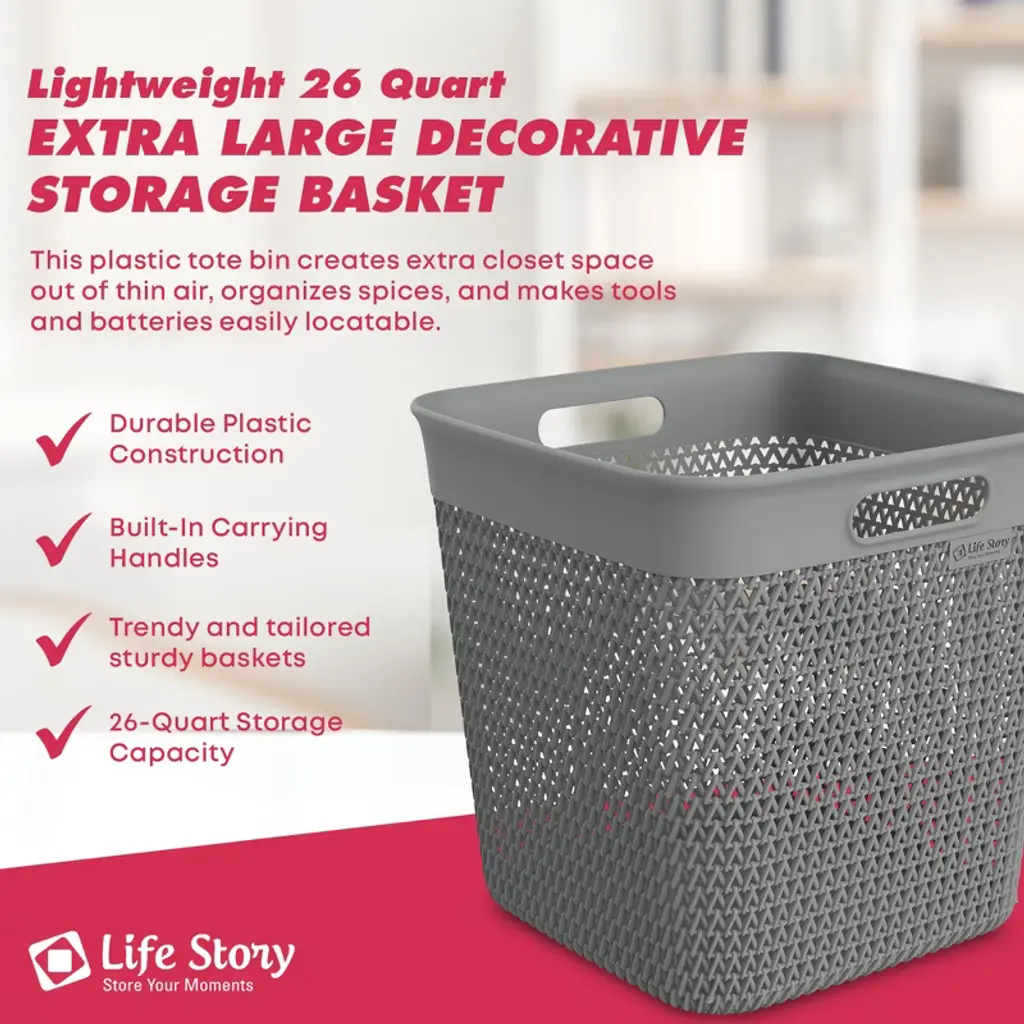Life Story Extra Large Storage Basket, Decorative Plastic Home Organizer, Lightweight Versatile Tub With Built-in Handles, 26 Quart, Gray