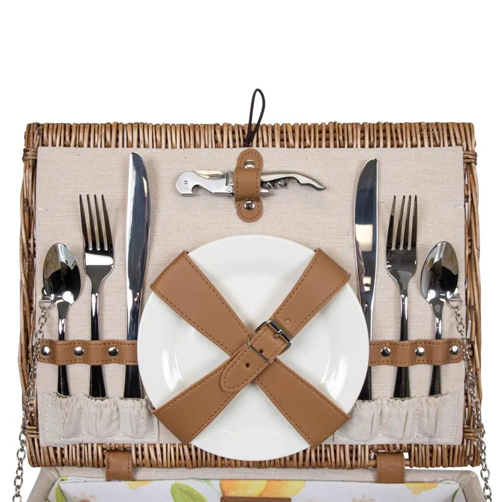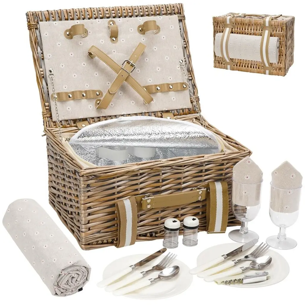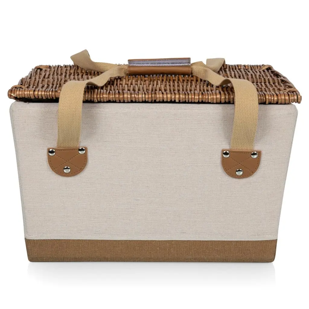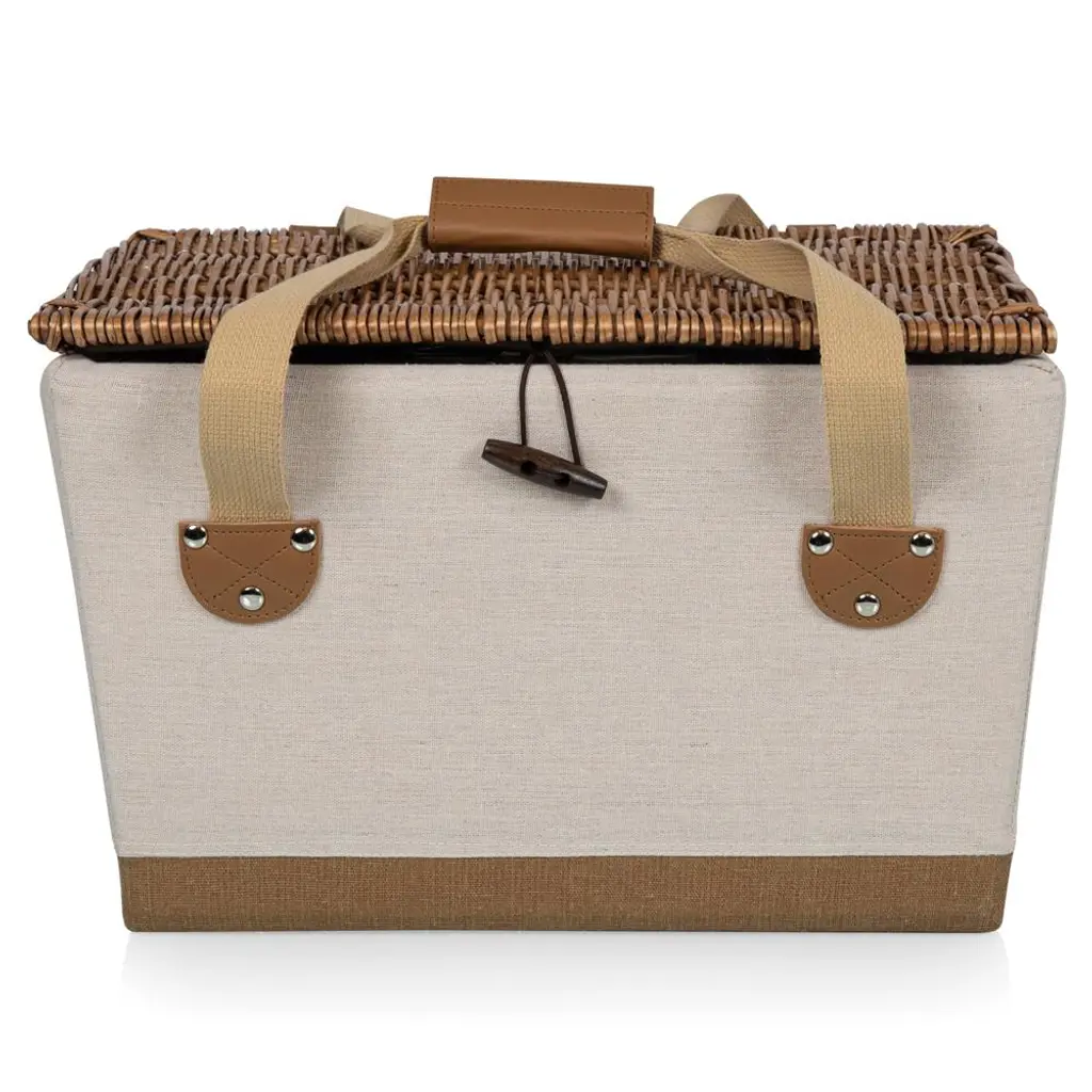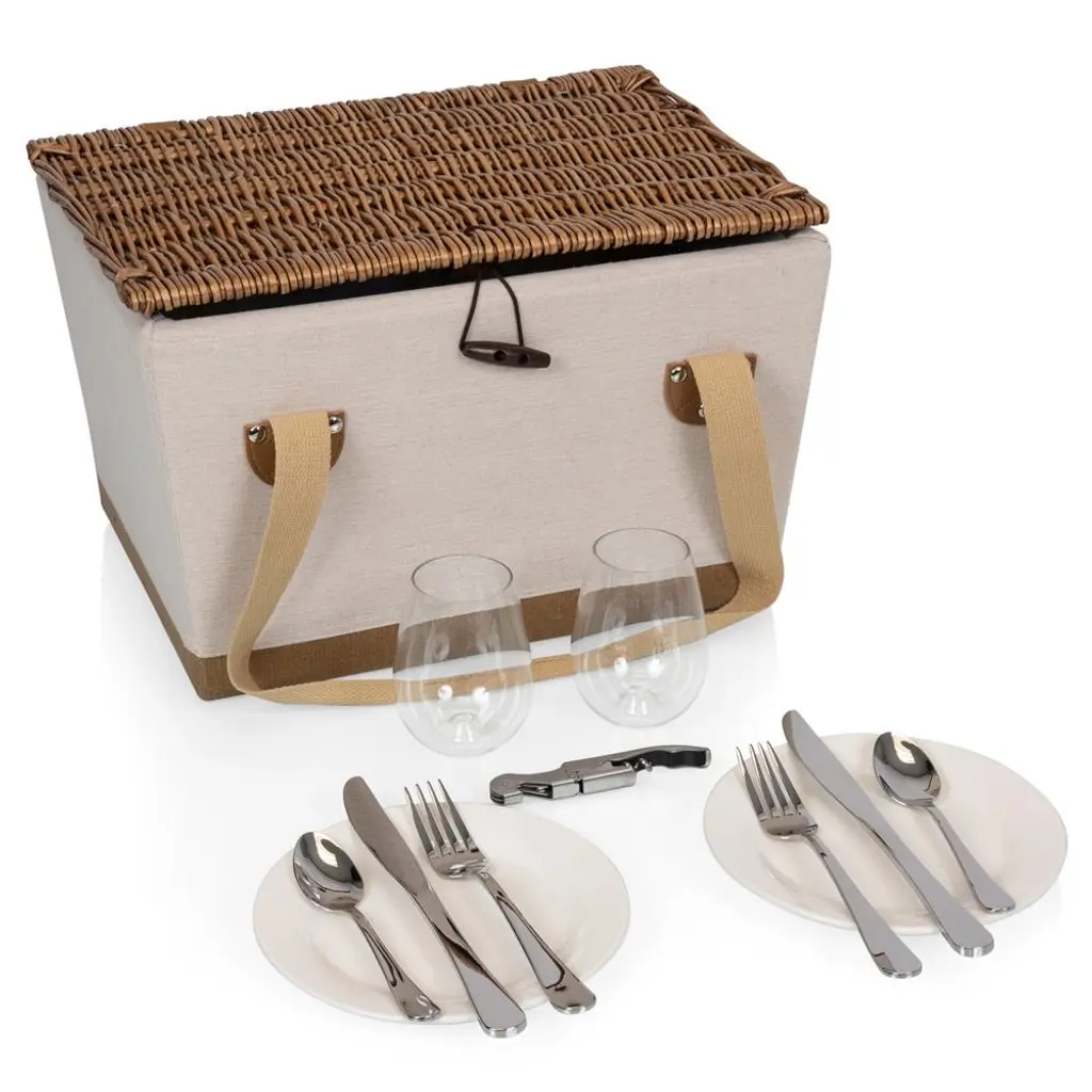 Lionel Modern Classic White Canvas Wood Basket With Serveware For 2