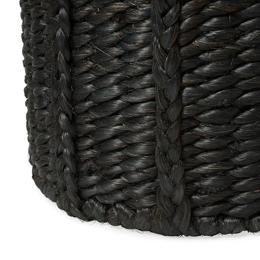Strikingly textural, our Lubid Black Abaca Basket beautifully combines form with sturdy durability. Handwoven in the Philippines out of black-dyed abaca, a tree fiber that’s tough yet surprisingly soft to the touch, this basket’s chunky weave contrasts with braided handles to show off the natural texture. Subtle variations are part of its inherent natural beauty. Available in two sizes.
