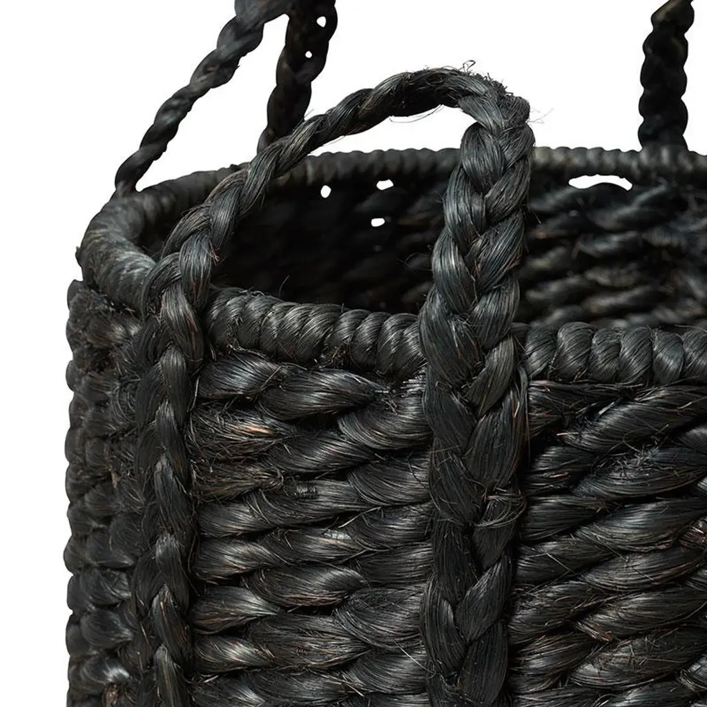 Strikingly textural, our Lubid Black Abaca Basket beautifully combines form with sturdy durability. Handwoven in the Philippines out of black-dyed abaca, a tree fiber that’s tough yet surprisingly soft to the touch, this basket’s chunky weave contrasts with braided handles to show off the natural texture. Subtle variations are part of its inherent natural beauty. Available in two sizes.