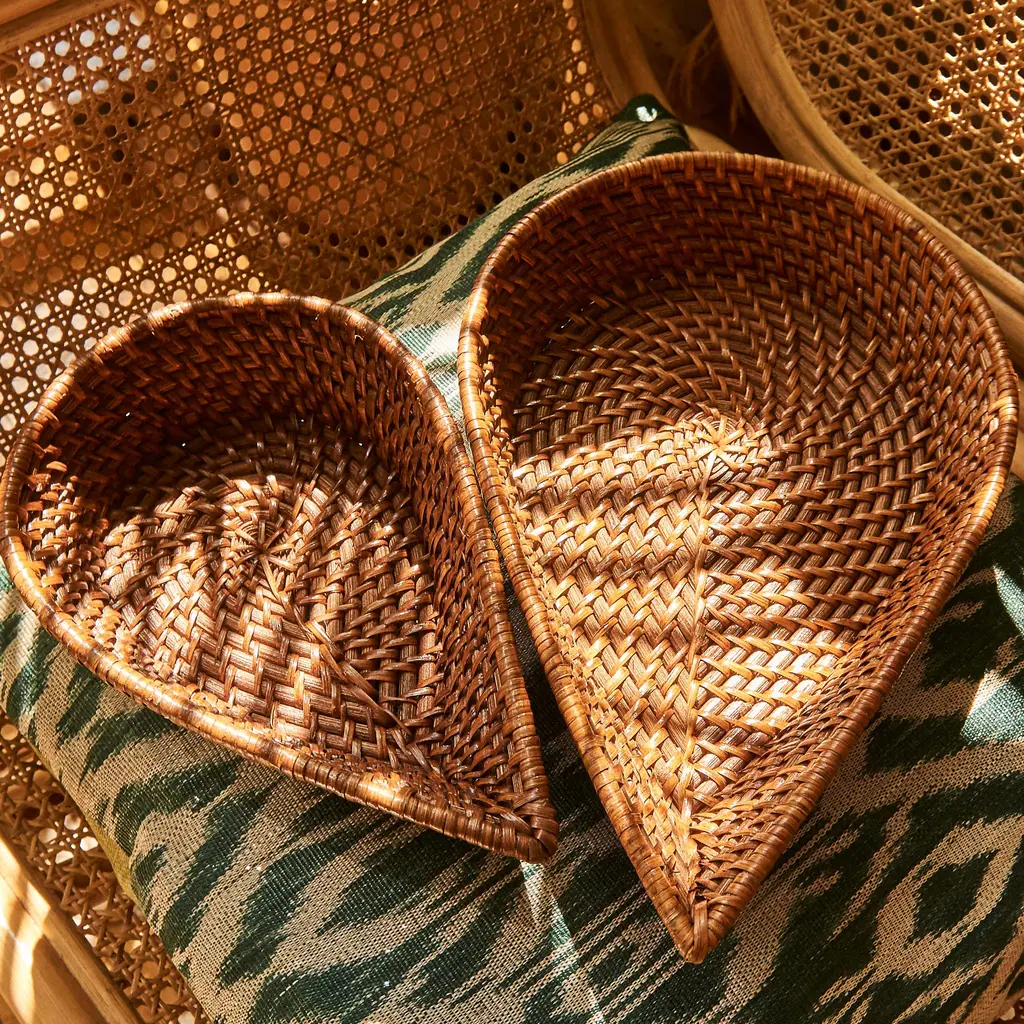 Add a boho chic vibe to your space with the Luntian Leaf Nesting Rattan Baskets. It is the perfect tray for catching keys or use it as an accent piece on your dinner table. The tray is crafted from rattan - a tropical palm native to South East Asia that is strong but lightweight. Each piece is handmade by a weaving community in Bicol, Philippines.