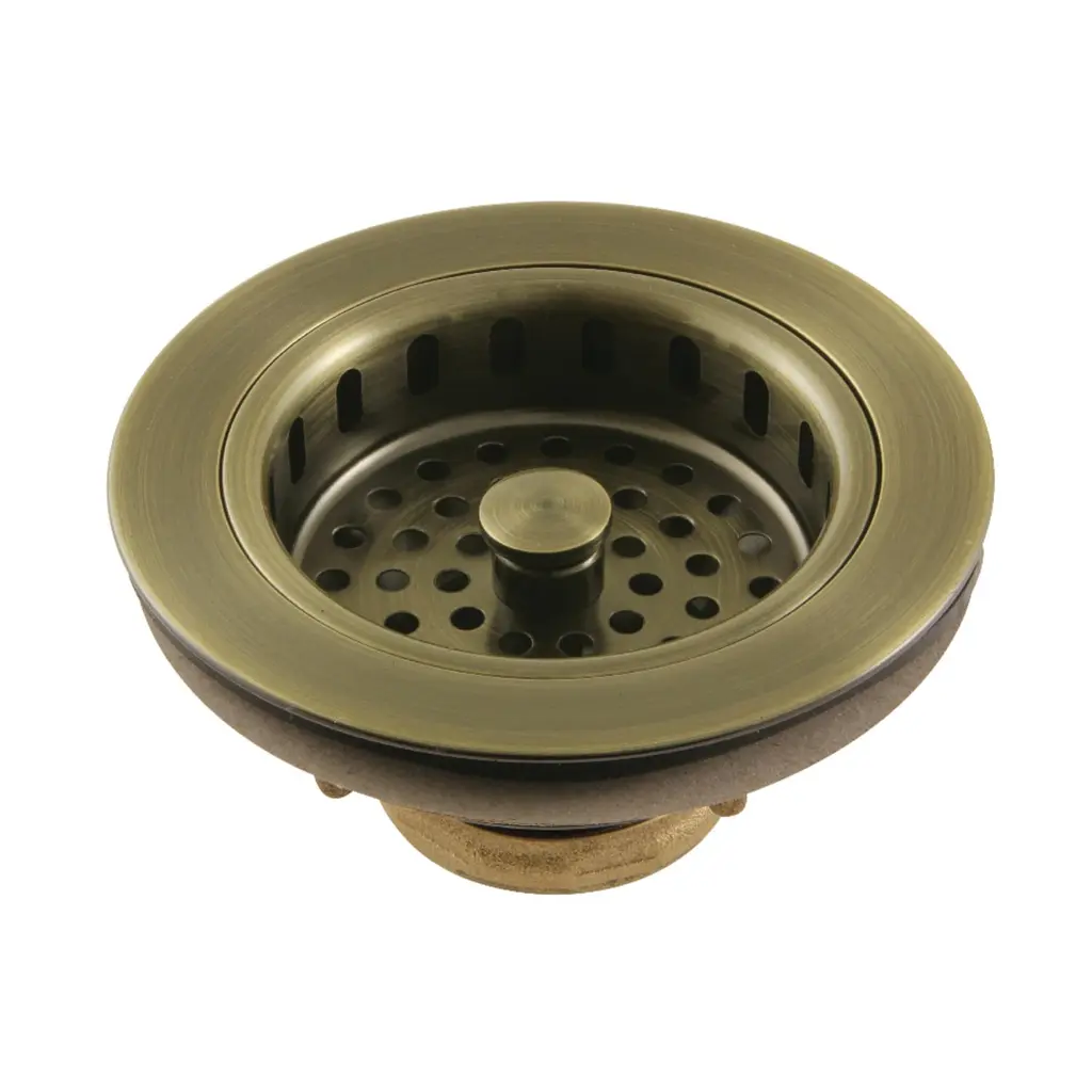 Easy to install and able to fit above most standard kitchen sink drain openings, the Kingston Brass heavy duty kitchen sink basket strainer keeps unwanted items from clogging your drain. The available premium finish options puts the finishing touches on your kitchen design as you can coordinate the sink drain with your faucet.FeaturesHigh quality brass constructionFits sink with 3-1/2" drain openingIncludes brass lock nut and removable basket4-1/2" diameterHeight: 2-5/16"Corrosion-resistant finishEasy to clean, just remove the basket to emptyDesigned for long-lasting durabilityProp 65 disclaimerWARNING: This product can expose you to chemicals, including lead which is known to the State of California to cause cancer or birth defects or other reproductive harm, for more information, go to www.p65warnings.ca.gov