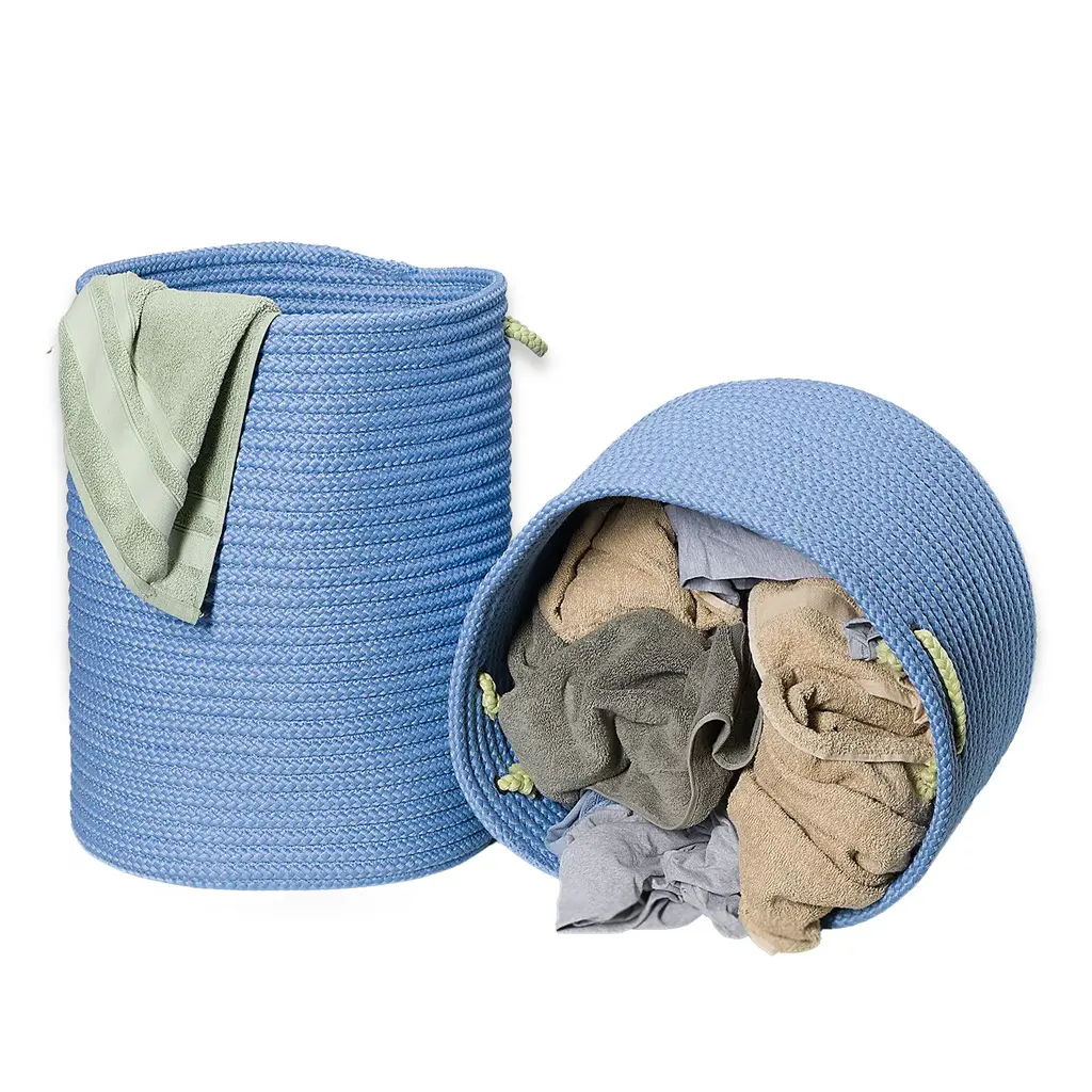 Marissa Woven Hamper Basket Set-2 For Use Anywhere 17dx22h/19dx15h - 17"x17"x22" /19"x19"x15" - Green