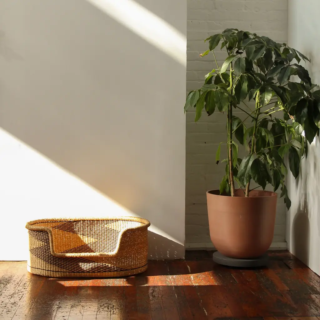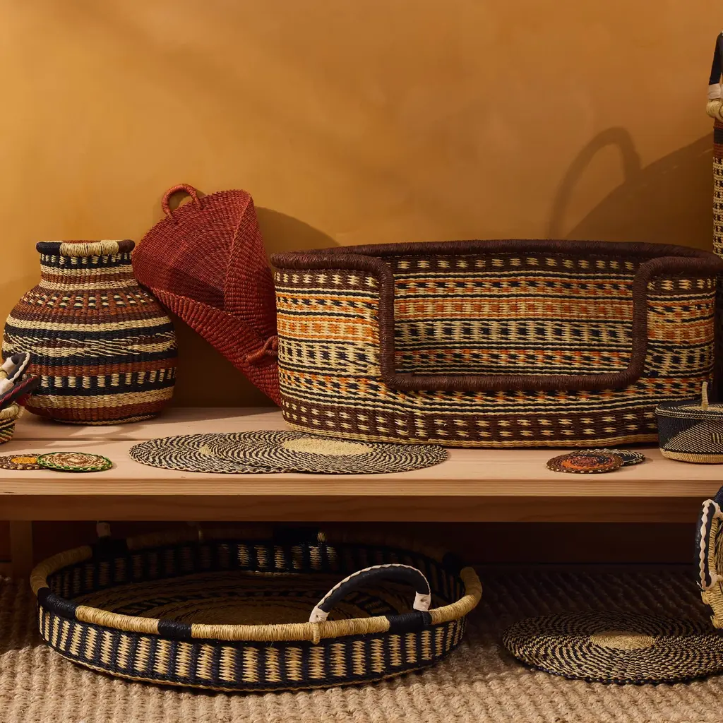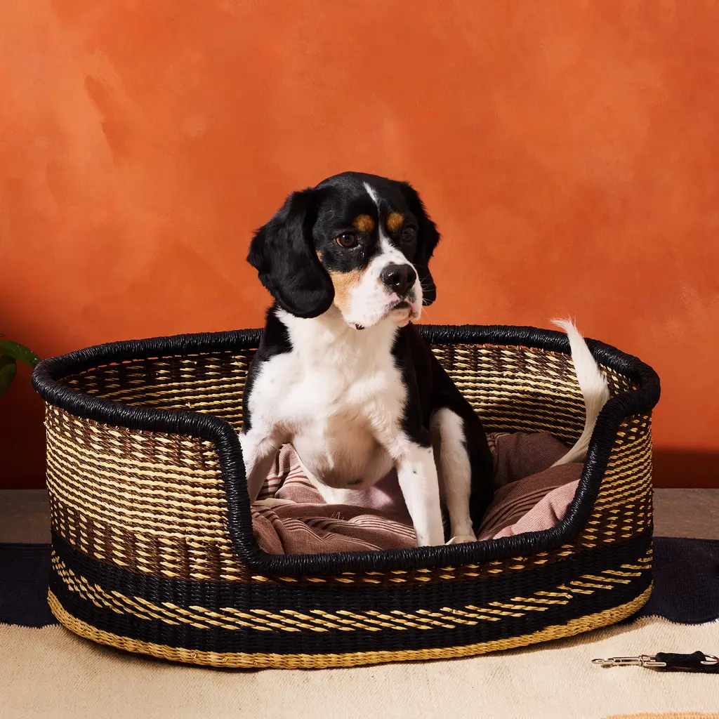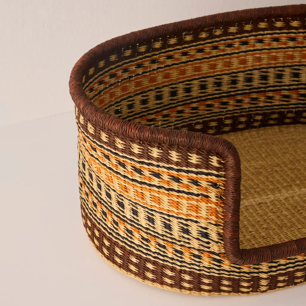 Give your furry friend a cozy spot to call their own with our medium-sized Baba Tree Medium Dog Bed Basket. Perfect for small to medium breeds such as Pugs, Beagles, and Boston Terriers, it offers comfort and security with its raised sides. Expertly handcrafted by Baba Tree's artisans in Ghana from natural elephant grass, this bed isn't just a sleeping spot — it's a piece of functional basket art that brings an elegant touch to your home, blending durability, balance, and style for your pet's peaceful haven. Like every Baba Tree item, this basket is made under ethical working conditions, ensuring each artisan receives a meaningful income from their exquisite workmanship. * Mattress not included with the Baba Tree Medium Dog Bed Basket.