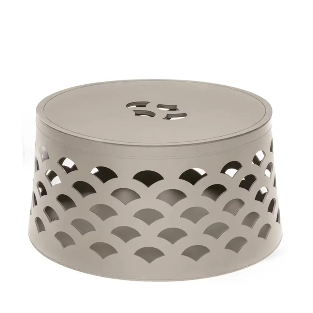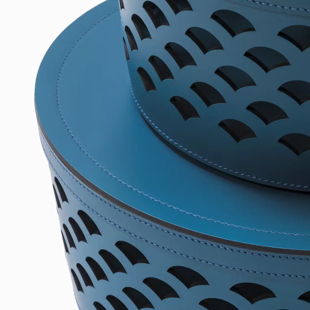 A small basket perfect for everyday use, the Venezia 2 is crafted from Finest Regenerated Leather that is both water-resistant and UV-resistant. The cut-out pattern in the leather is elegant and contemporary in style. Lid is included and an inner cotton bag is also available on request. Dimensions available are 16.5 cm, 21.5 cm and 26.5 cm in diameter.
