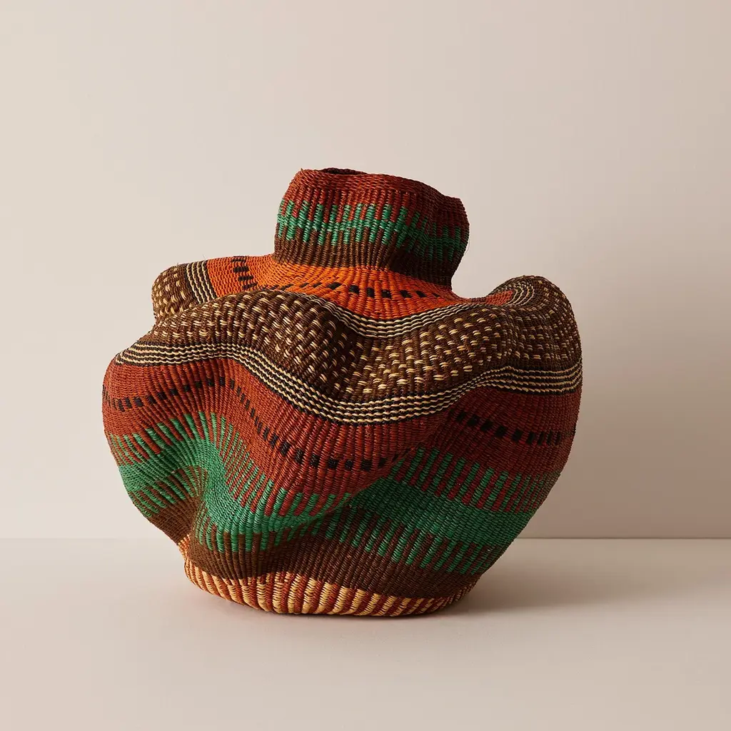 One piece of décor can change a room. An equally magnificent and practical piece for your home, the sculptural Yoomelingah-yure, or "bent pot" exclusive to Baba Tree, is all that is needed to set the tone. Carefully crafted by Baba Tree's talented weavers in Ghana, its wave-like shape showcases the master craftsmanship of its maker and brings organic appeal to modern spaces. Consider filling it with a cluster of branches or dried fronds for an artful and dramatic floral arrangement.Every Baba Tree piece is crafted under ethical working conditions and provides a meaningful income for its maker.