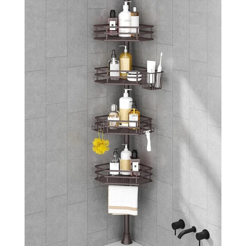 STYLISH SHOWER: Three metal wire racks allow for water drainage while storing towels, shampoo, soap, razors, loofahs, and creams securely in or right outside your shower. Great for master, kids, or guest bathrooms VERSATILE: Use inside your shower to hold bath accessories or on the bathroom floor to store toilet paper, toiletries, hair accessories, tissues, cleaning supplies, cosmetics, and more DURABLE: Strong steel construction is rust resistant and stays looking new for years of quality use STYLISH: Neutral bronze finish matches any decor style IDEAL SIZE: Measures 11.5" x 7.5" x 25.75", the perfect size for the corner of your shower or bathroom