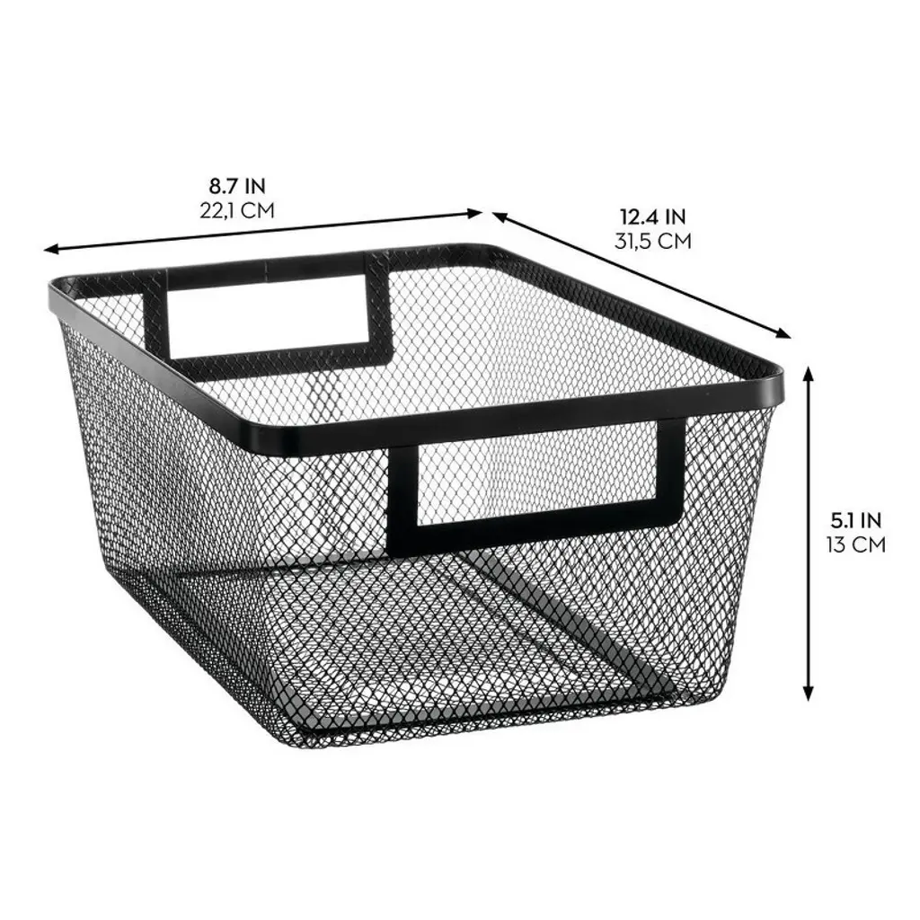 Metal Mesh Pantry Basket With Handles - Set Of 2 - Matte Black