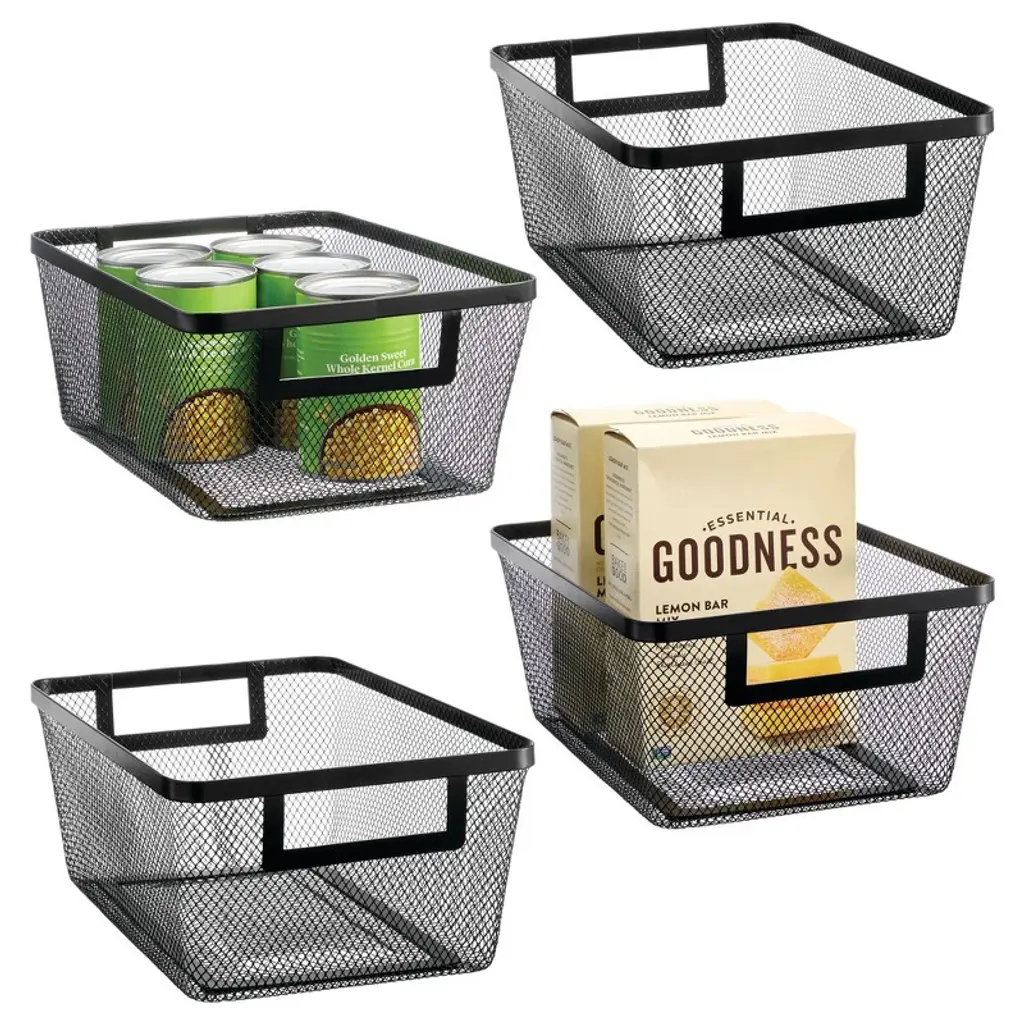Metal Mesh Pantry Basket With Handles - Set Of 4 - Matte Black
