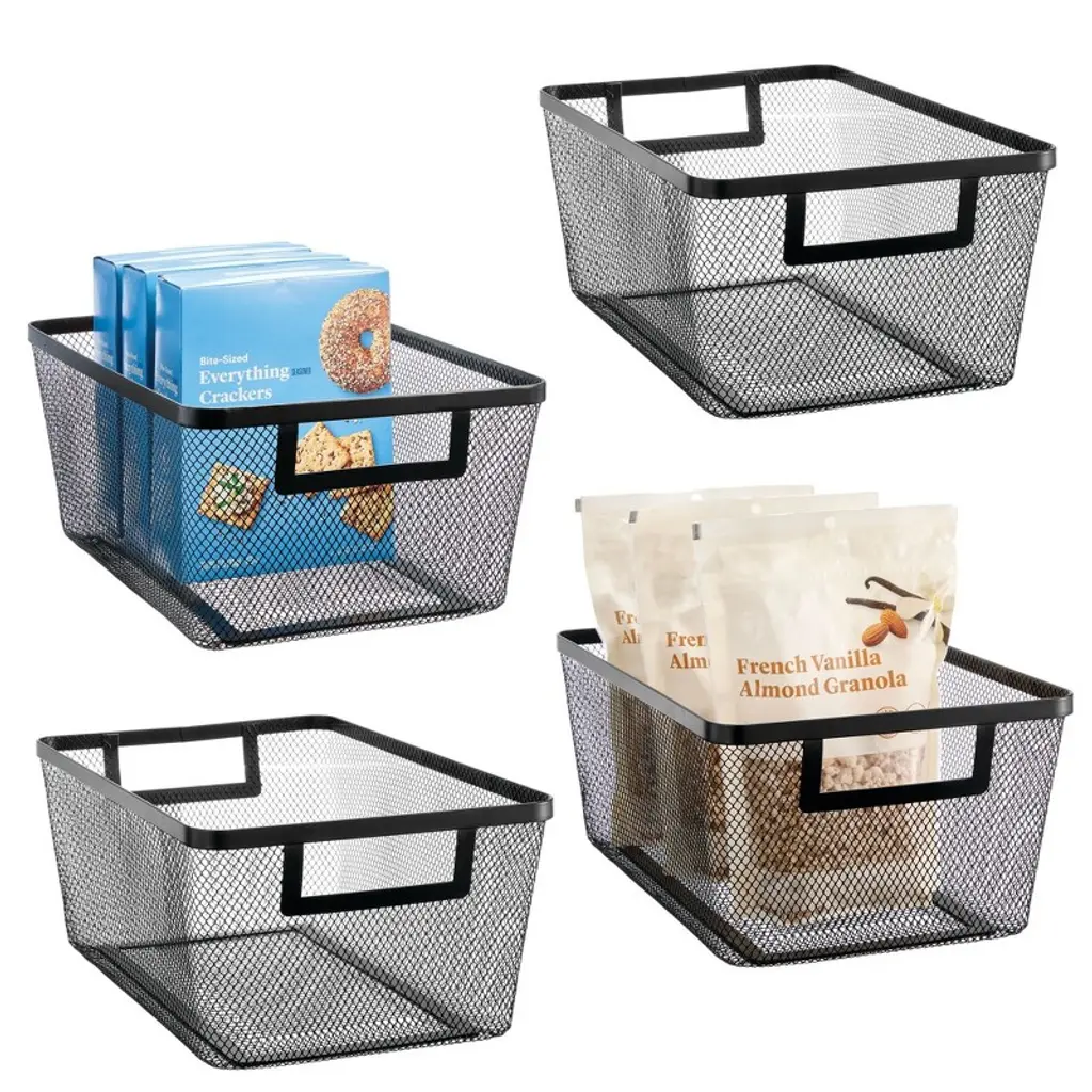 Metal Mesh Pantry Basket With Handles - Set Of 4 - Matte Black