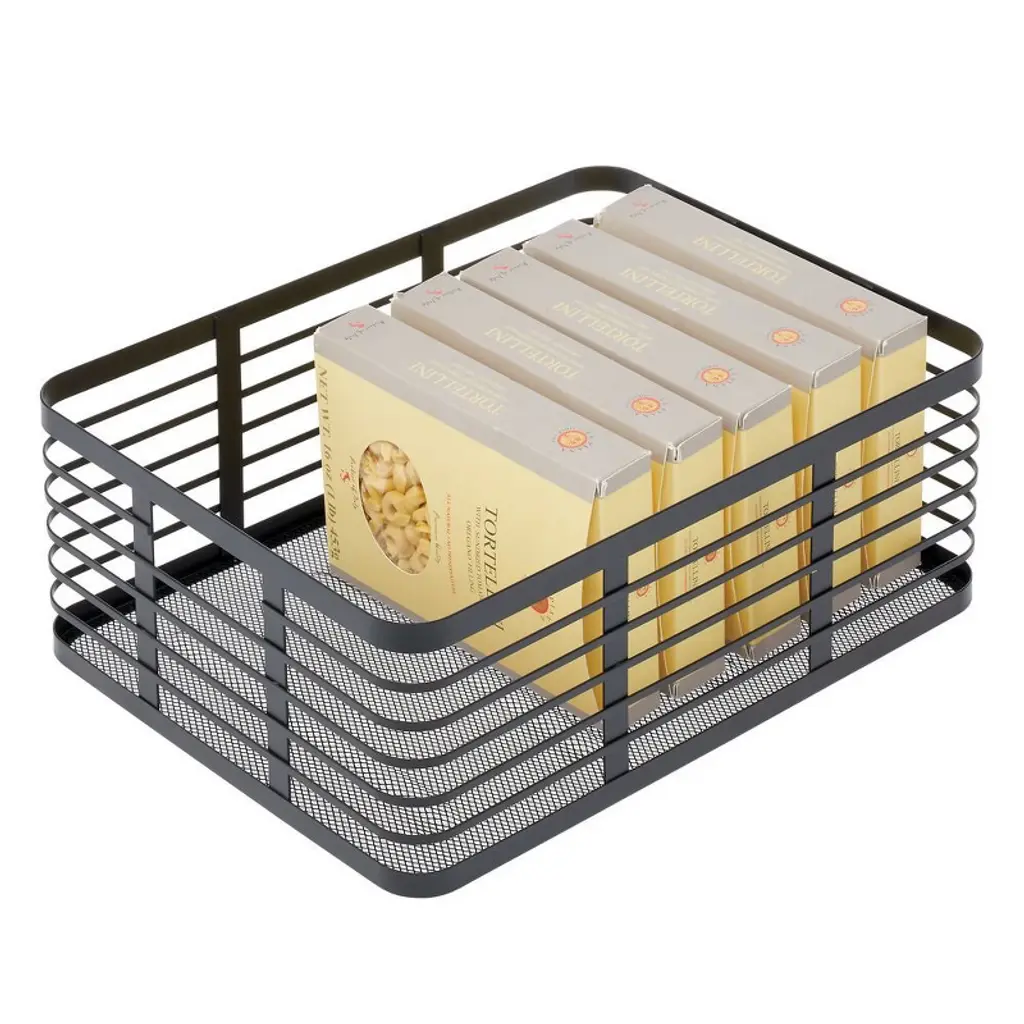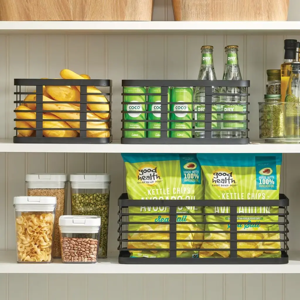 Go from a pantry full of frustration to one that's practical and functional with our good-looking Carson Wire Baskets. Sleek and highly versatile, this solution corrals small seasoning jars, snacks, or boxed foods, so you never lose anything to the back of the pantry again. The open wire construction provides ventilation for storing fruits and vegetables and easy visibility to quickly inventory items without rummaging. Crafted from durable metal with integrated handles, these baskets transport easily and make a darling display when moved from the pantry to the kitchen table. This elevated catchall creates a frustration-free kitchen space so you can quickly grab what you need and focus on the task at hand-whipping up something delicious.