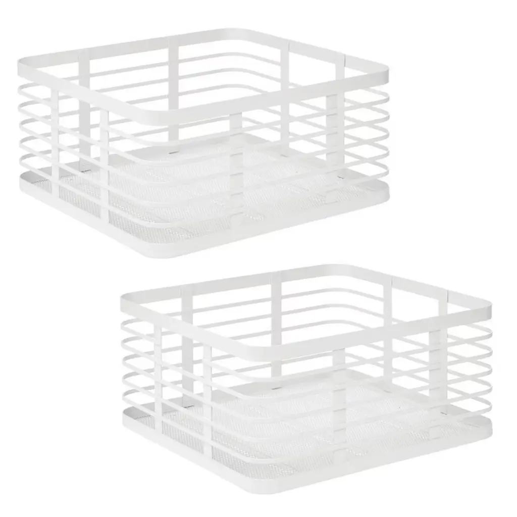 Go from a pantry full of frustration to one that's practical and functional with our good-looking Carson Wire Baskets. Sleek and highly versatile, this solution corrals small seasoning jars, snacks, or boxed foods, so you never lose anything to the back of the pantry again. The open wire construction provides ventilation for storing fruits and vegetables and easy visibility to quickly inventory items without rummaging. Crafted from durable metal with integrated handles, these baskets transport easily and make a darling display when moved from the pantry to the kitchen table. This elevated catchall creates a frustration-free kitchen space so you can quickly grab what you need and focus on the task at hand-whipping up something delicious.