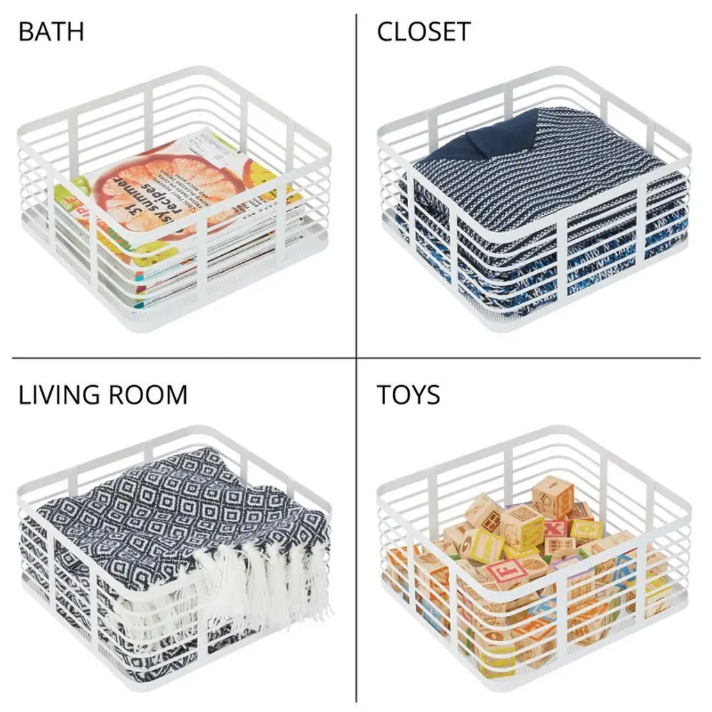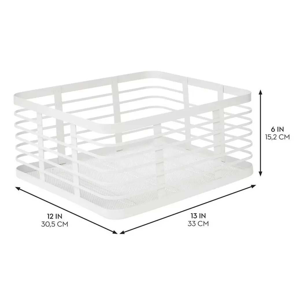 Metal Pantry Basket With Handles - Set Of 2 - Matte White