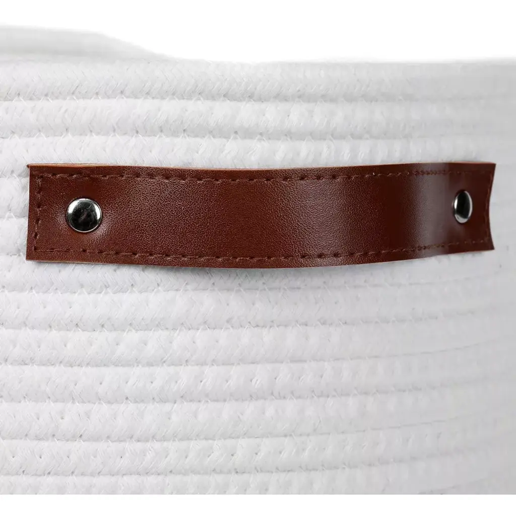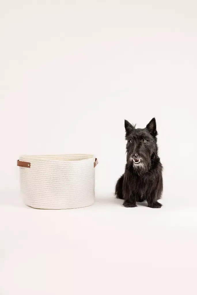 This Pet Toys basket is a perfect place to store your dog's, cat's, guinea pig's, or other pet's toys! The simple design is sure to fit in with your home décor while decluttering your space of your pet's toys. Two leather handles on opposite ends of the basket and oval shape give it some character. The basket is perfect size for your larger pets to grab their own toys out of!