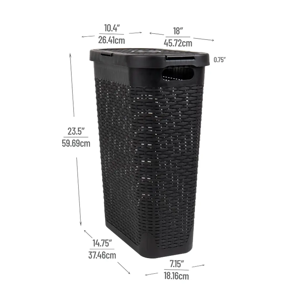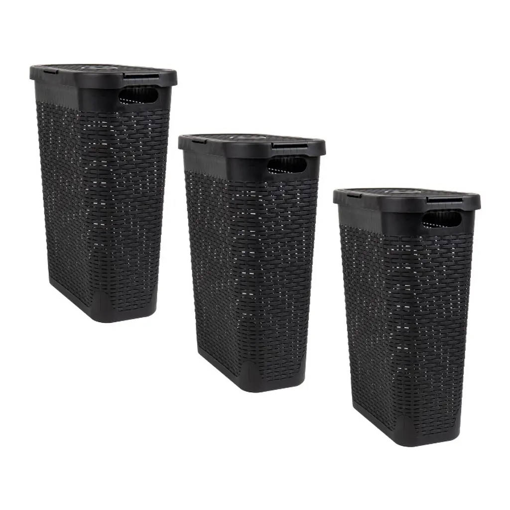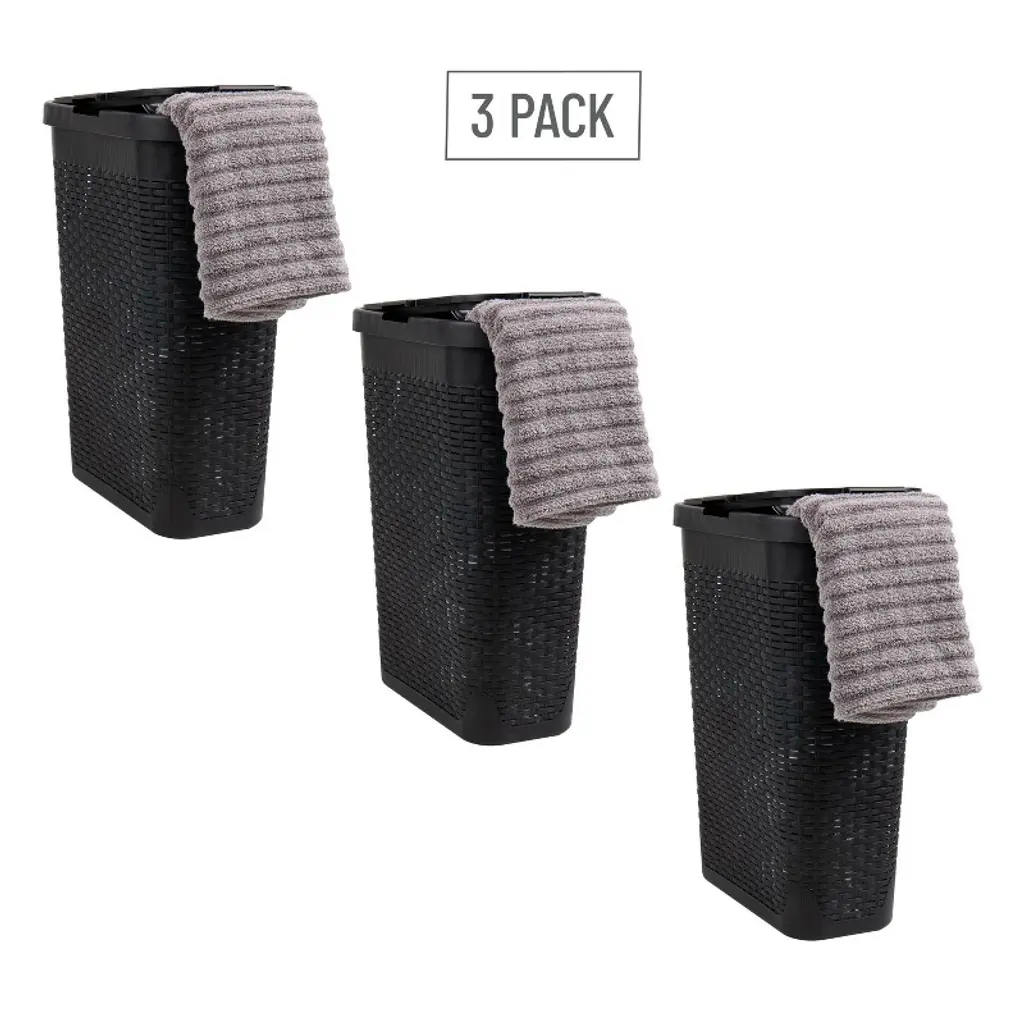 Mind Reader 3Pk 40l Premium Wicker Look Slim Hamper Black