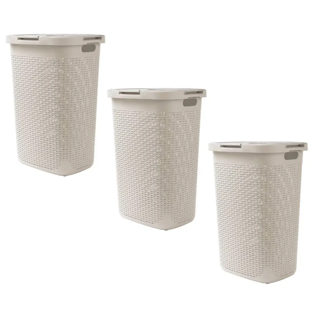 Mind Reader 3Pk 60l Premium Wicker Look Slim Hamper Ivory