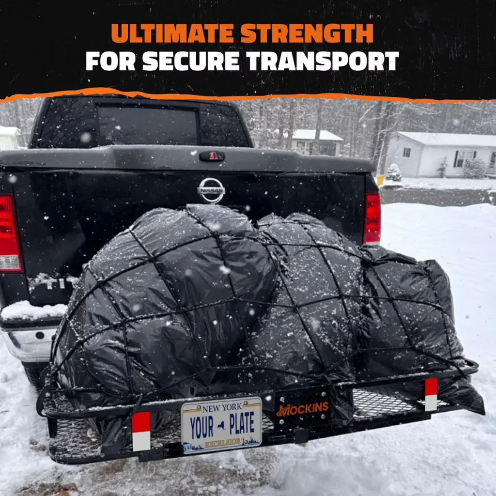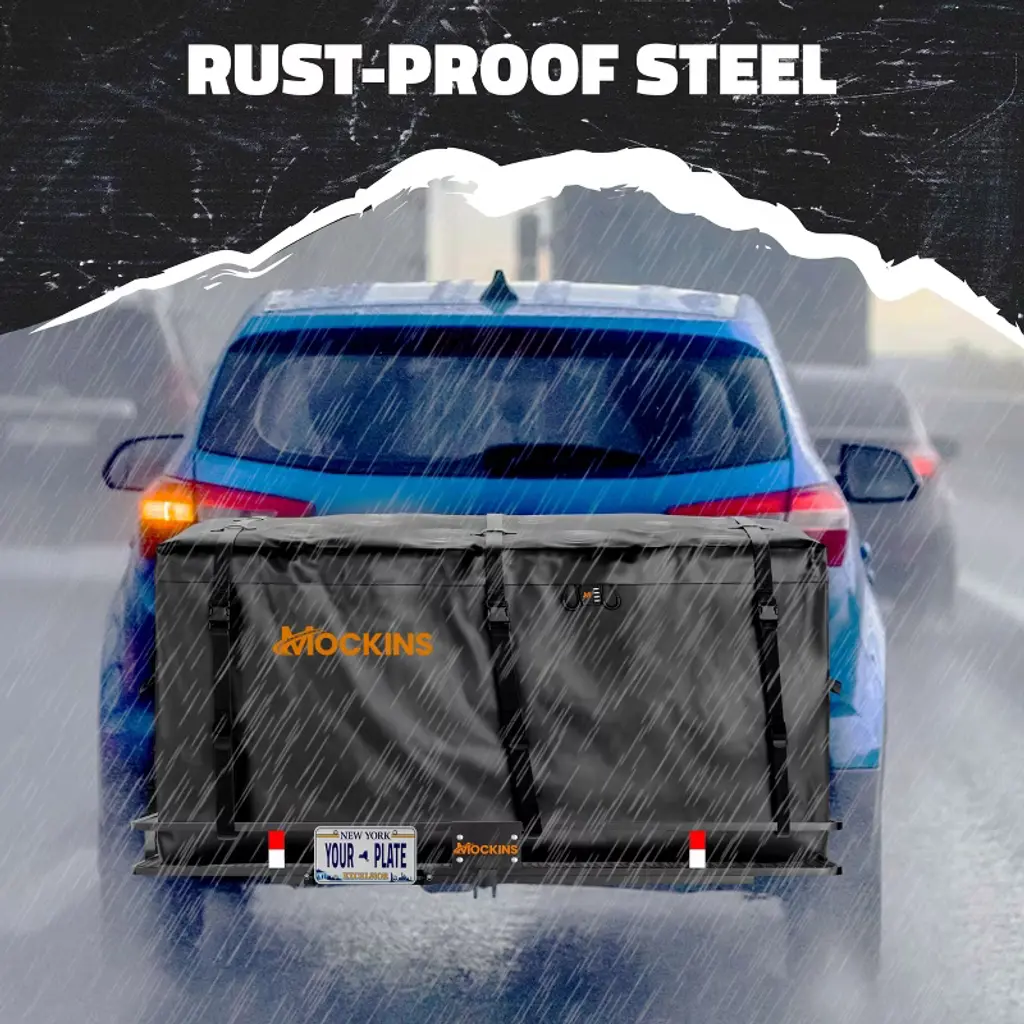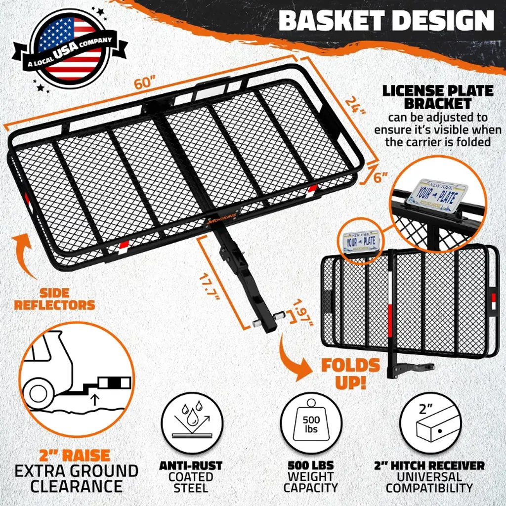 Mockins 60"x24"x6" Hitch Cargo Carrier Rack With Luggage Carrier Accessories - License Plate Bracket, Net, Straps, Hitch Lock & Stabilizer