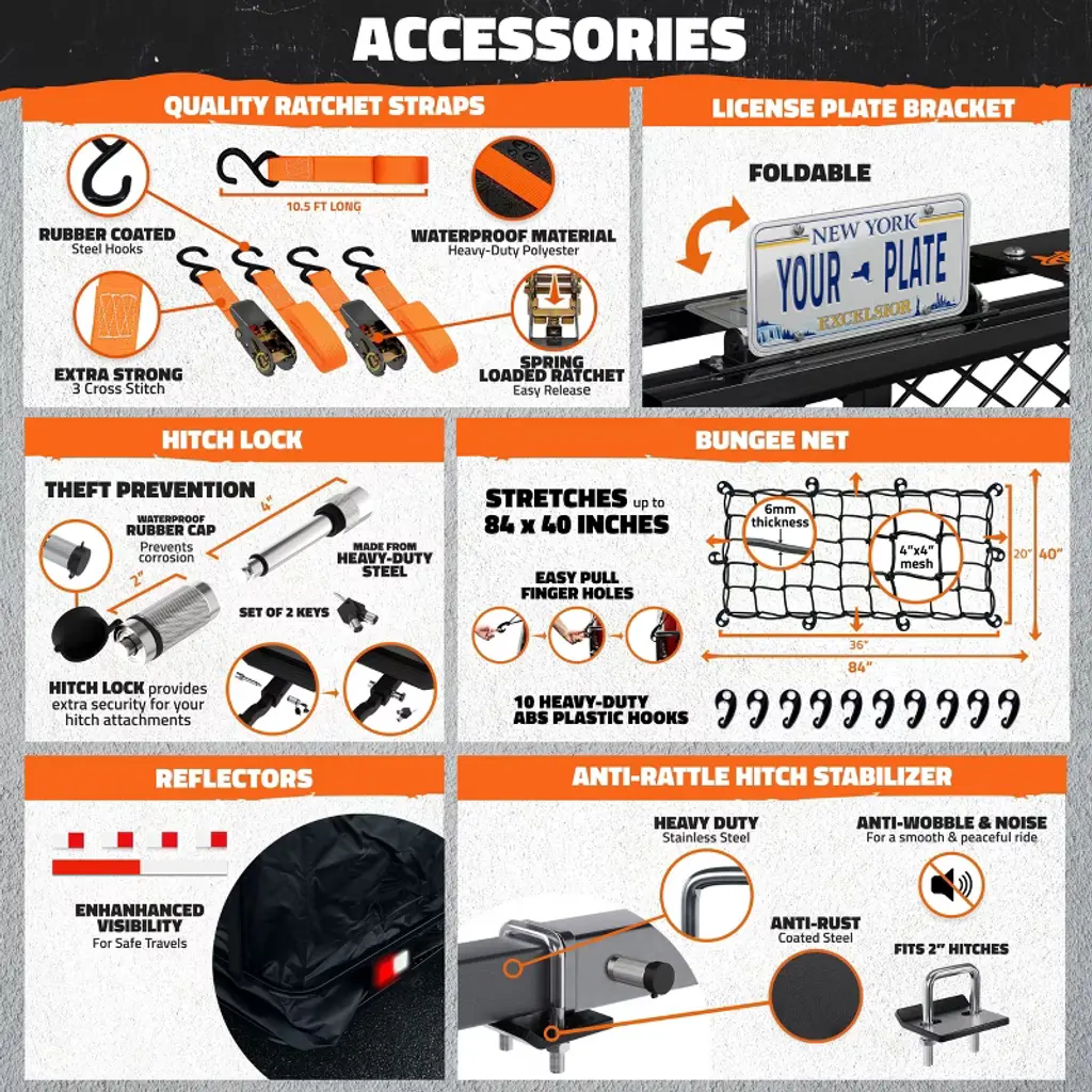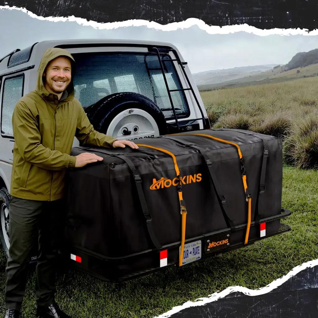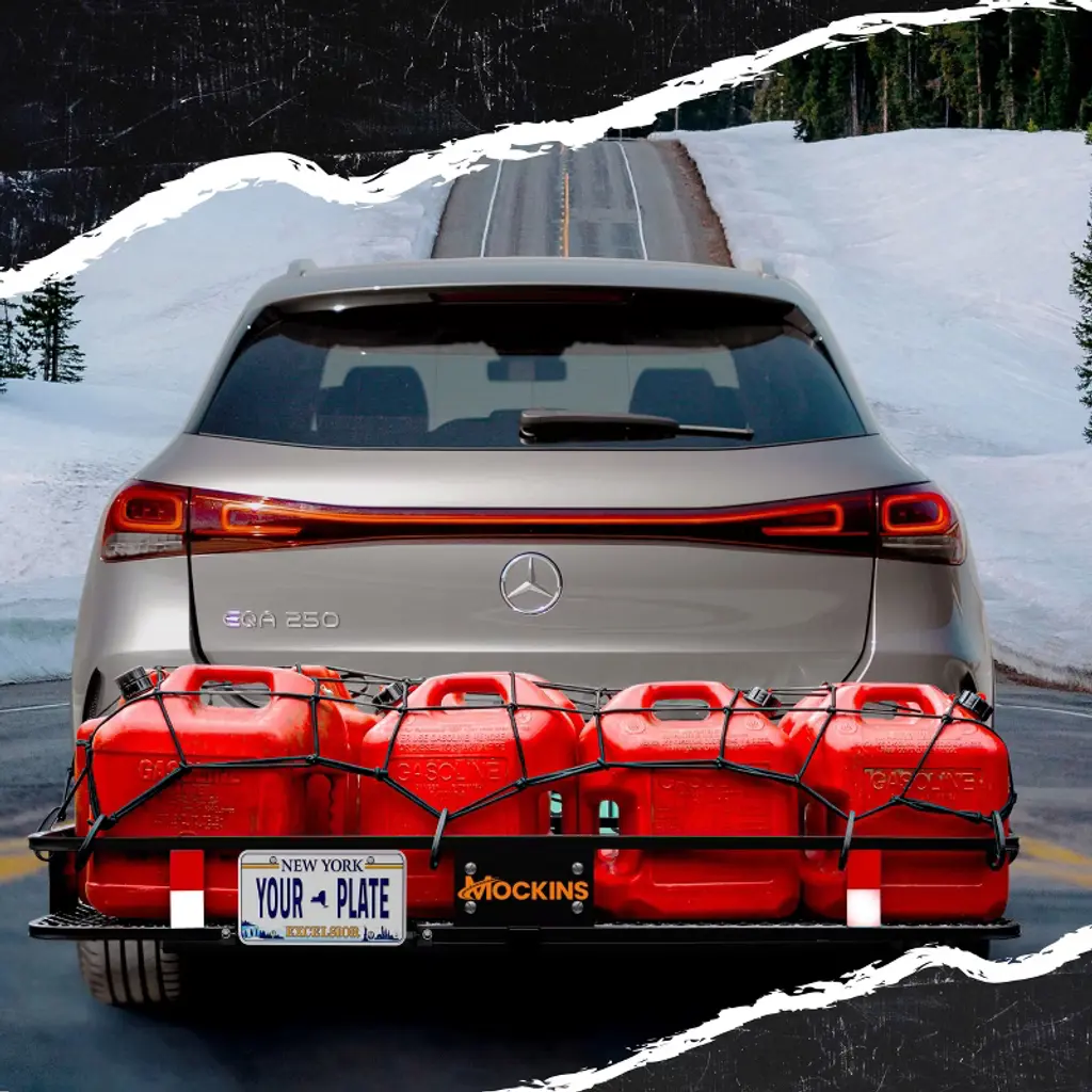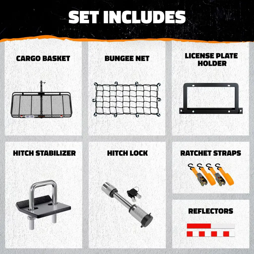 Mockins 60"x24"x6" Hitch Cargo Carrier Rack With Luggage Carrier Accessories - License Plate Bracket, Net, Straps, Hitch Lock & Stabilizer