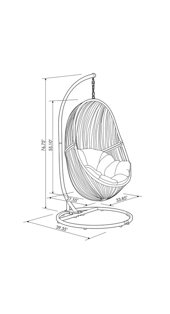 The Bali Swing Chair adds a definite tropical vibe to your home. Relax and feel like you're lounging at a luxury resort on an island with its imitation woven rattan basket and vibrant fluffy cushion. Place it on your poolside or turn it into an accent in your living room so you can fall right in when you get home from work. The swing chair is supported by a heavy steel frame. The basket is attached with a heavy duty chain that can be adjusted to accommodate a variety of seat heights most comfortable for you. If using outdoors, we recommend storing the cushions inside or covered to preserve the bright colors. Suggested weight capacity is 265 pounds.