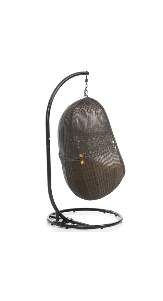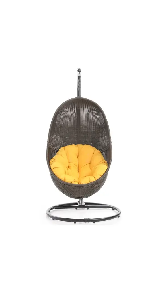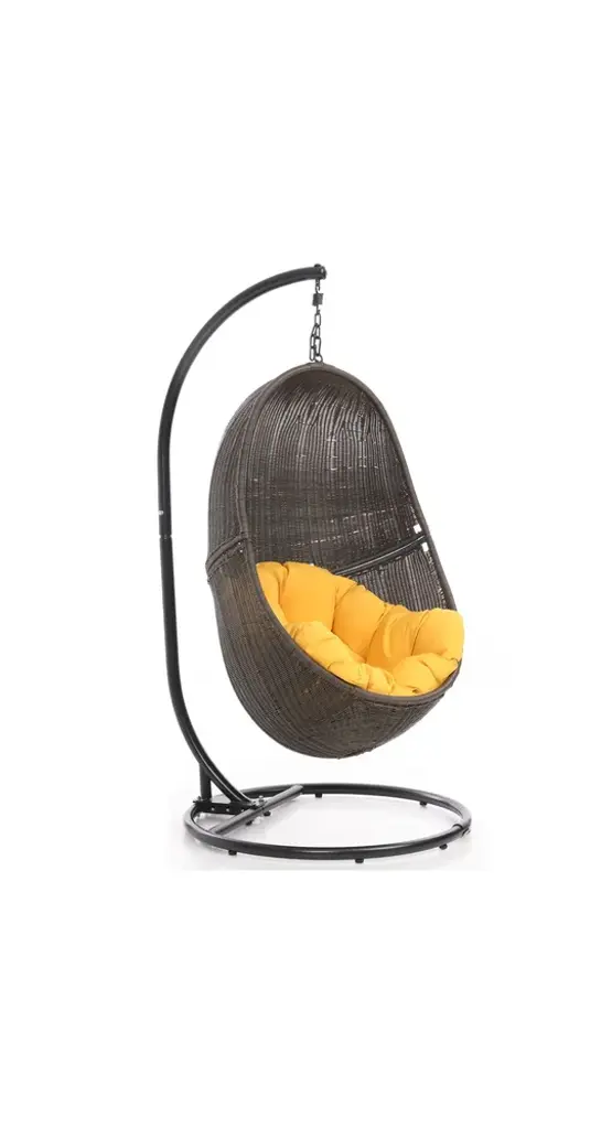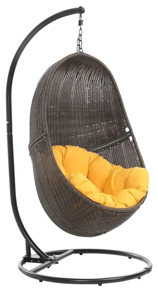Modern Outdoor Bali Swing Chair With Stand - Espresso Basket With Yellow Cushion