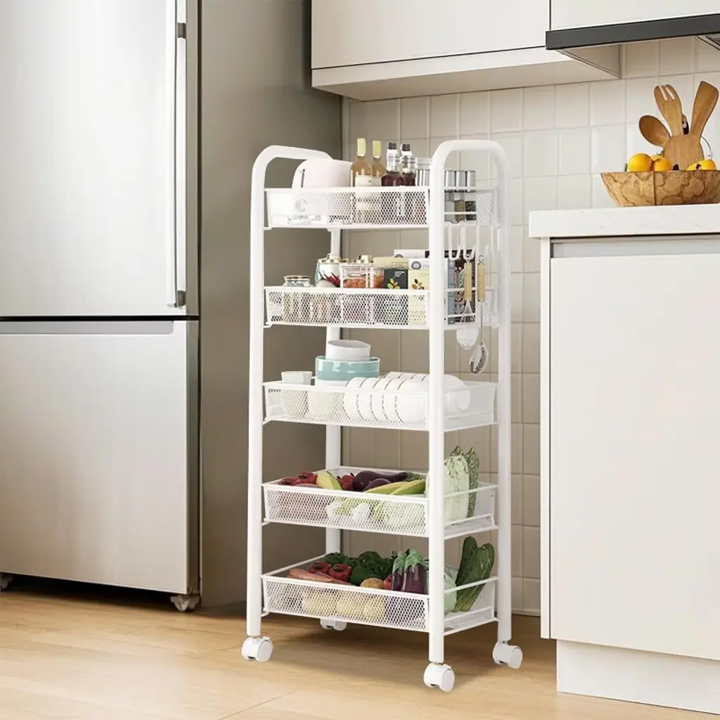 Rotating Kitchen Storage Shelf 5 Tier, Metal Fruit Vegetable Storage Basket Multi-Layer Vegetable Rack Storage Trolley on Wheels, Floor-Standing Basket for Kitchen Bathroom, Square