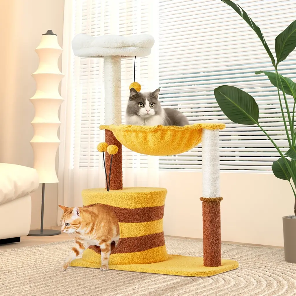 Specification:Key Features:Description: This multi-level cat tree features a vibrant avocado theme and a variety of platforms, perfect for cats to lounge, play, and scratch. With a rotatable basket, wide perch, and jute-covered scratching posts, it encourages your cat's natural behaviors while keeping them entertained. The soft, detachable cushions provide a comfortable resting spot, and the durable, stable design ensures safety with its sturdy frame and rounded corners. The charming avocado accents and hanging pompom add a fun touch, making this tower not only functional but also a stylish addition to your home. Dimensions: 23.5" x 23.5" x 51".