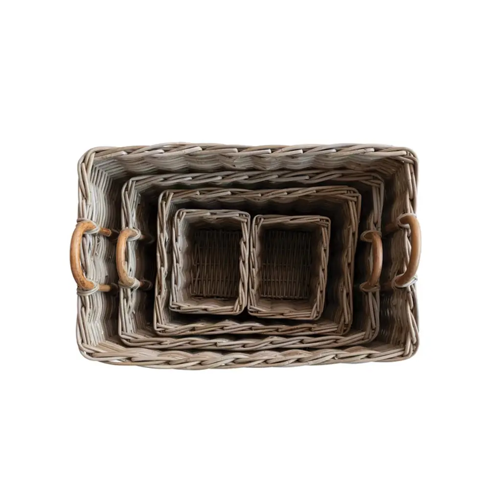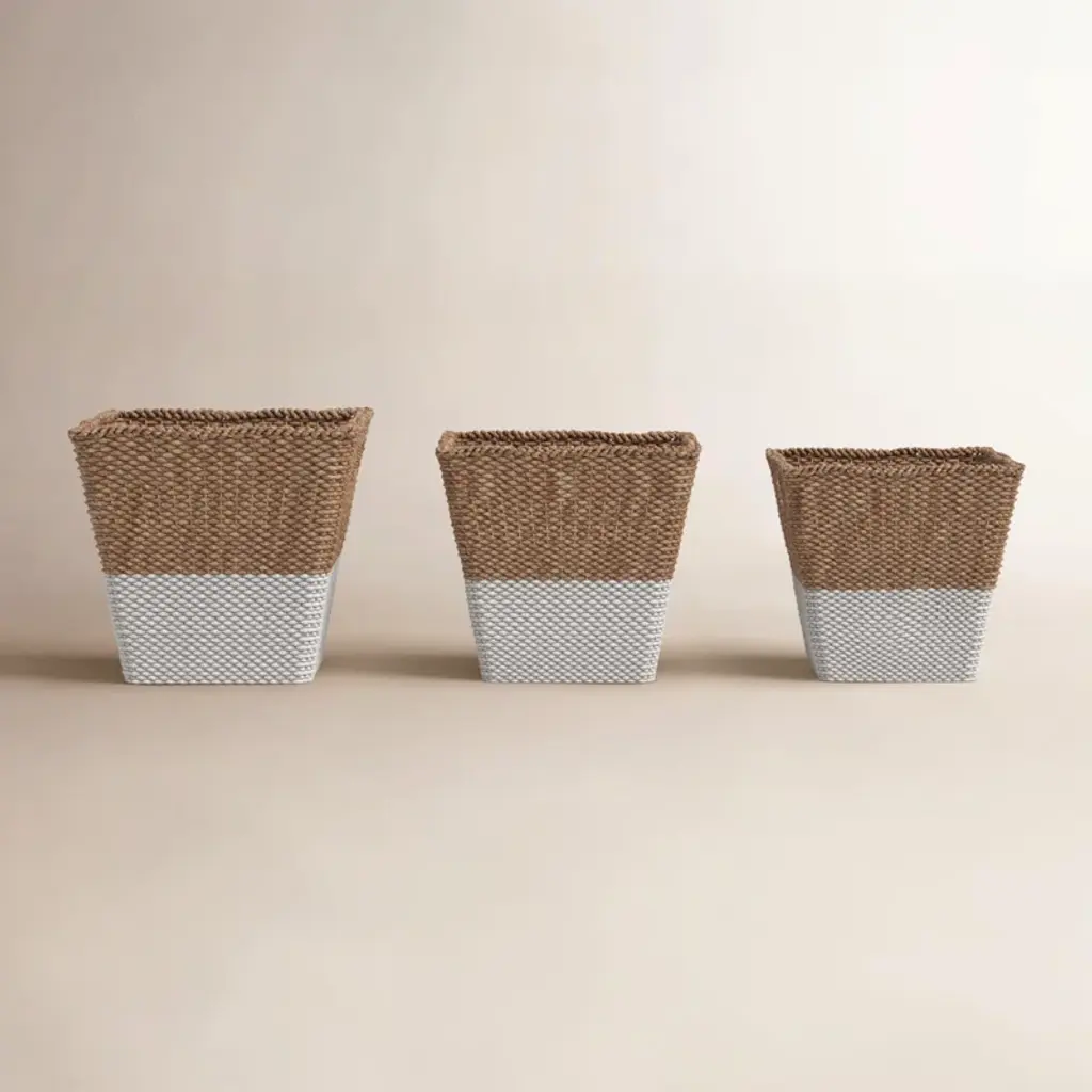Nantucket Natural/white Basket Medium: 18"l X 18"w X 9"h, Small: 13"l X 13"w X 8"h, Set Of 2