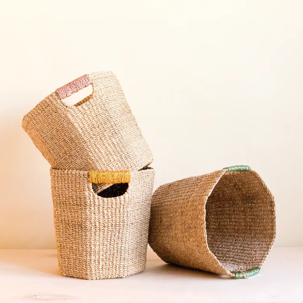 Store everyday objects or use it with your favorite greens as a planter. Our all-around handwoven baskets are both stylish and functional and adds a natural vibe to just about any room. Display individually or pair them with our other baskets for more impact.