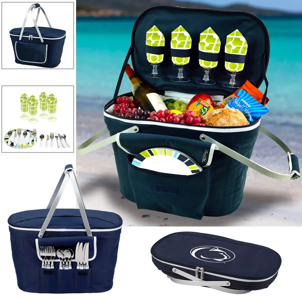 Ncaa Penn State Nittany Lions Collapsible Insulated Picnic Basket For Four - Blue
