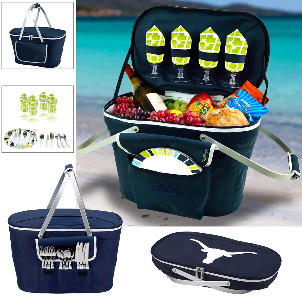 Ncaa Texas Longhorns Collapsible Insulated Picnic Basket For Four - Blue