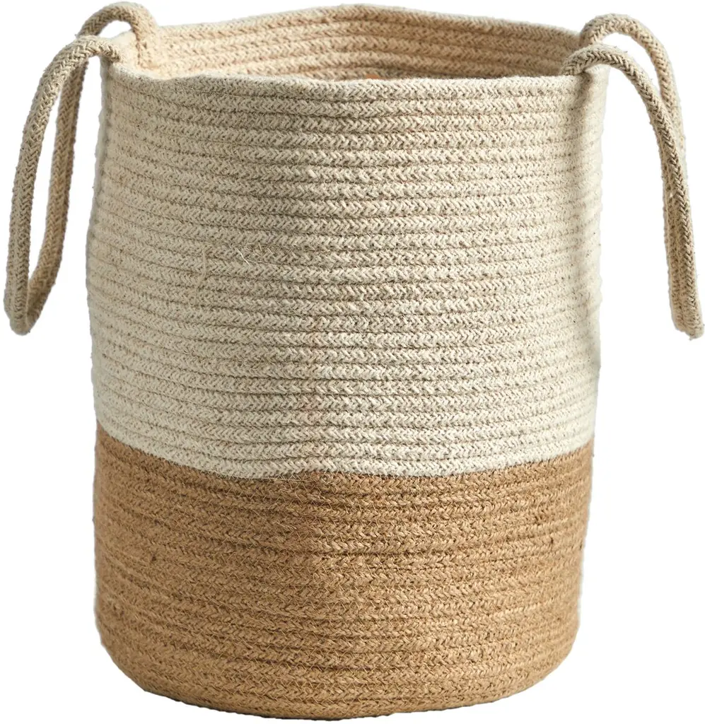 Nearly Natural 12-in Handmade Natural Cotton Woven Basket Planter
