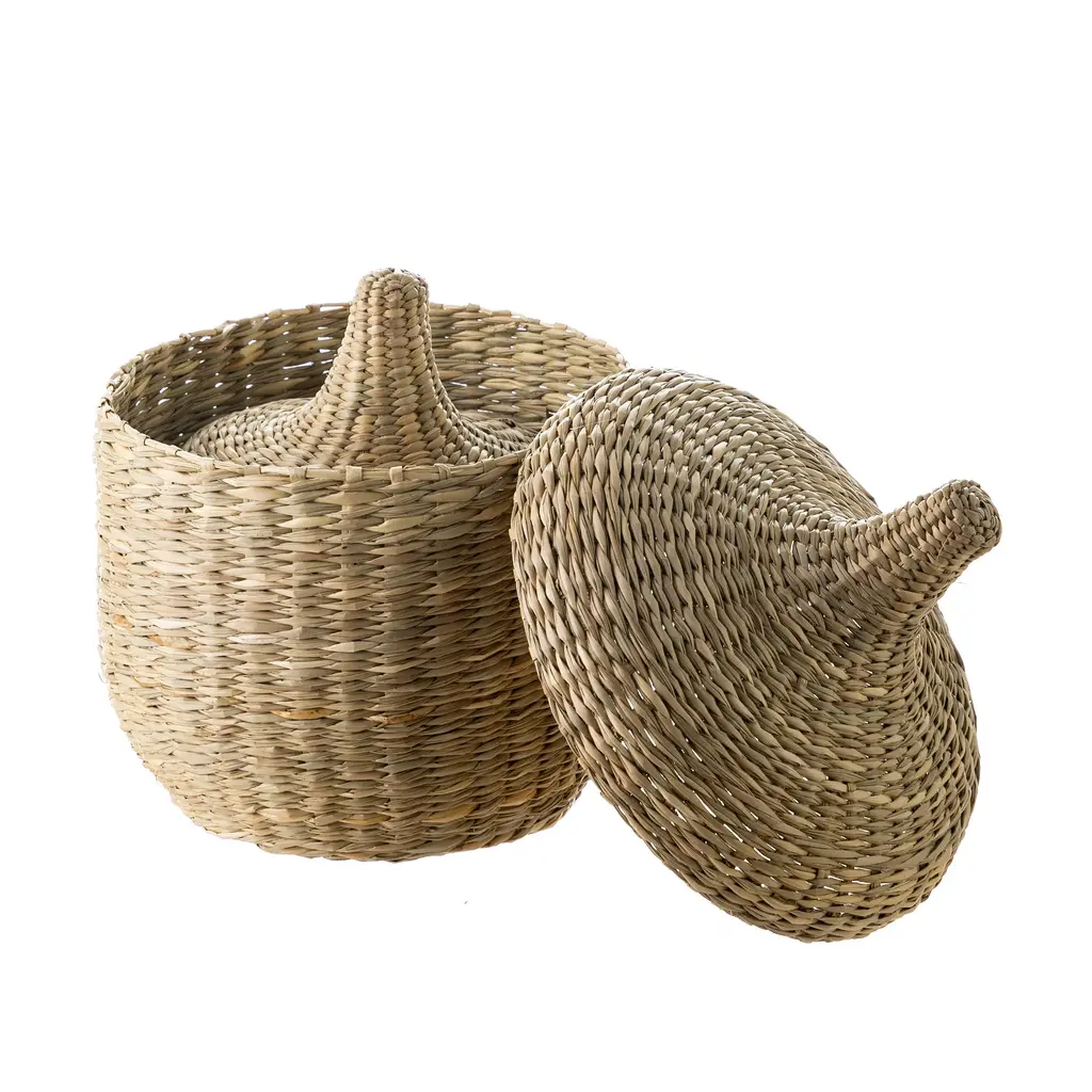 Ideal for holding knick-knacks and sundries, these nesting baskets lend fall inspiration to the table and bring a touch of natural beauty and organization to your space. Crafted by skilled artisans, these baskets are handwoven with care, utilizing sustainable seagrass fibers that showcase the beauty of organic materials. The acorn shape lends a touch of whimsy to these functional pieces, making them a delightful accent for any space.