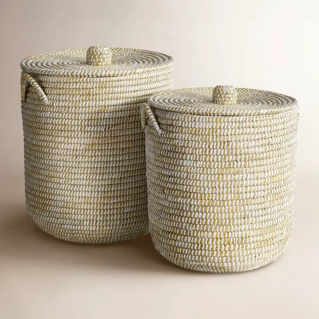 Baskets are the ultimate multi-purpose piece for any home. Add natural texture and extra storage to your space with our woven natural water hyacinth basket. The basket comes complete with a lid, cotton liner, and convenient handles for carrying. Perfect for your laundry or to simply store any item you wish. Features: Woven water hyacinth laundry basket with lid Natural brown color with cream cotton liner Basket is perfect for laundry or to store items inside Recommended for indoor use only Dimensions: 16" high x 16" diameter Material(s): water hyacinth/cotton
