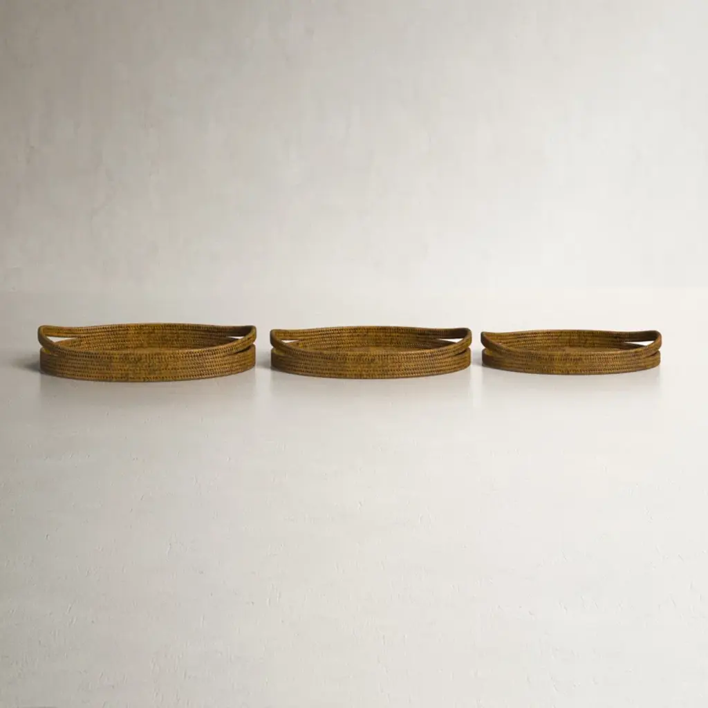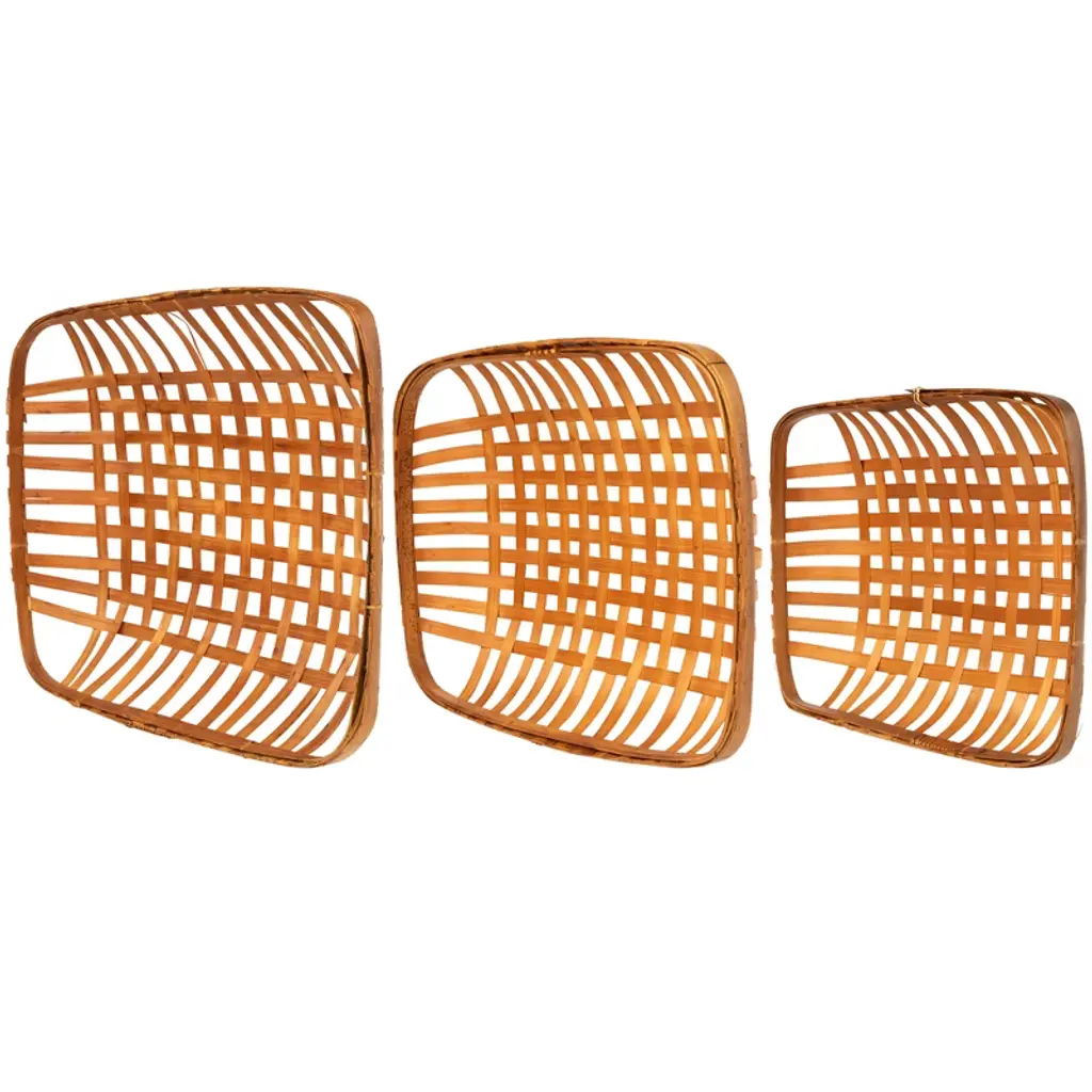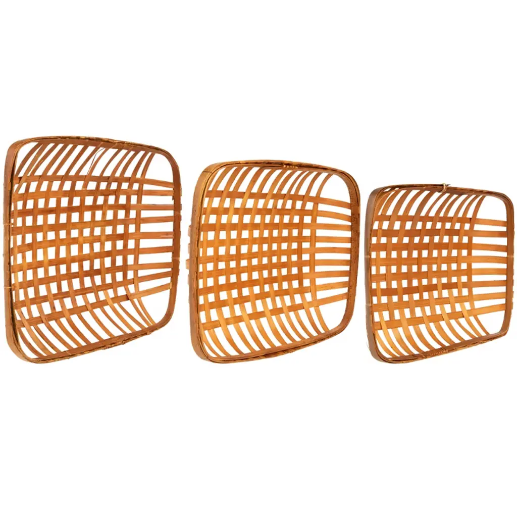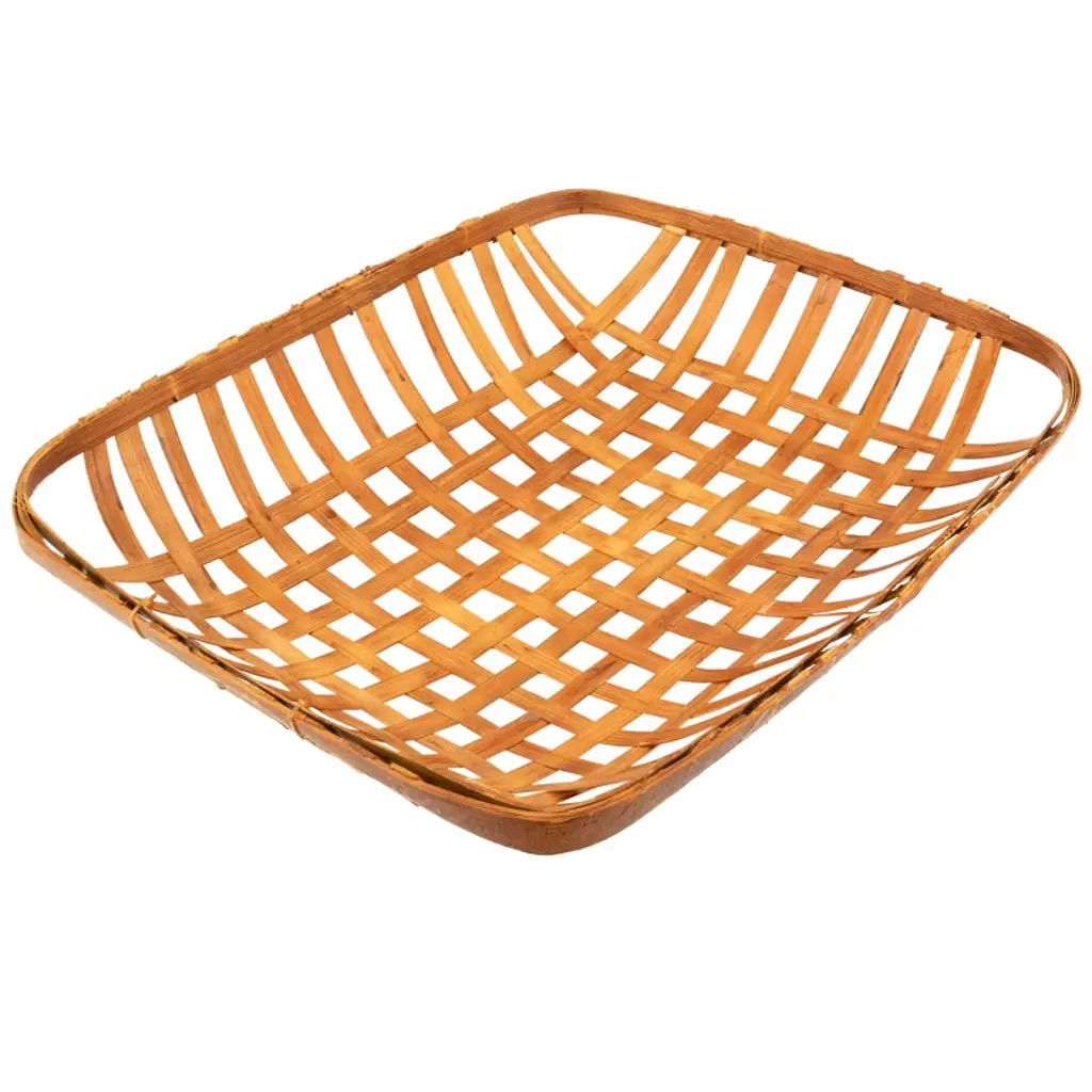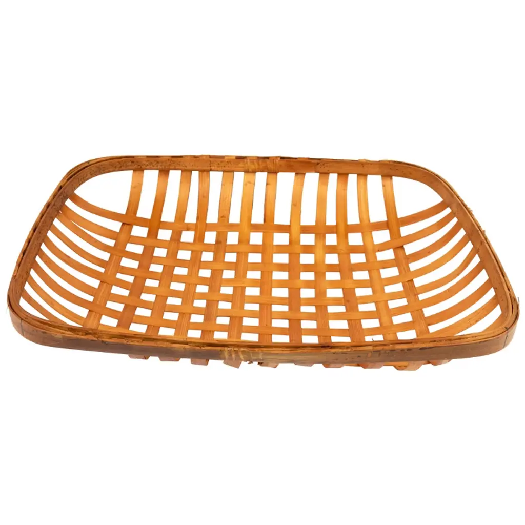 Add old-fashioned country charm to your home or office with these tobacco baskets. These simple, lattice designed baskets are a wonderful accent piece for the kitchen and dining areas. It is great to hang as a wall decoration or used as a tray centerpiece! Features: Light brown wooden tobacco basket Lattice basket weave design Place on table tops and mantles Features a rectangular shape Hang on walls for a unique touch Colors will vary due to nature of wood Recommended for indoor use only Dimensions: Small: 3.25"H x 13.5"W x 17.25"D Medium: 3.5"H x 15"W x 19.75"D Large: 3.75"H x 17"W x 22.5"D Material(s): wood