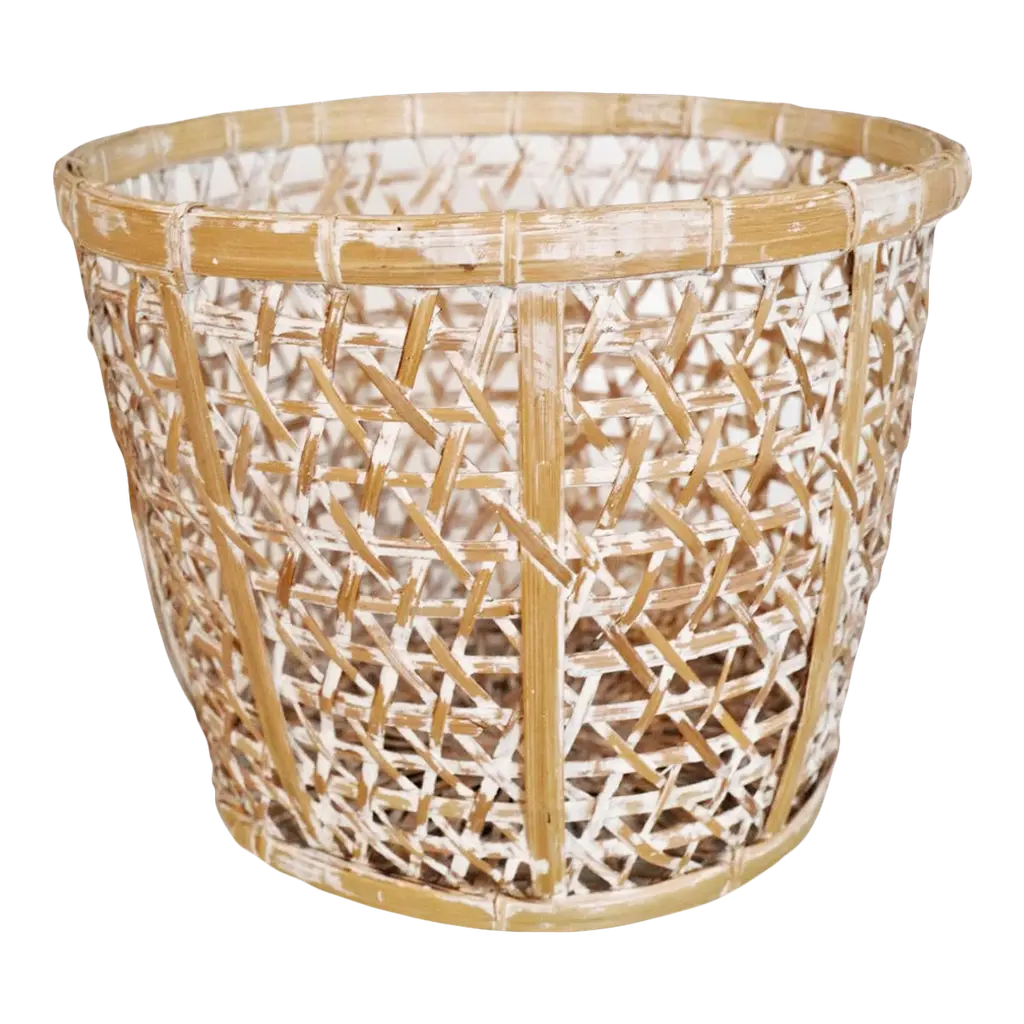 Add old-fashioned country charm to your home or office with these tobacco baskets. These simple, lattice designed baskets are a wonderful accent piece for the kitchen and dining areas. It is great to hang as a wall decoration or used as a tray centerpiece! Features: White wash wooden tobacco basket Lattice basket weave design Place on table tops and mantles Features a round shape Hang on walls for a unique touch Colors will vary due to nature of wood Recommended for indoor use only Dimensions: Small: 3.25" high x 12" diameter Medium: 3.75" high x 14.5" diameter Large: 4.25" high x 16" diameter Material(s): wood