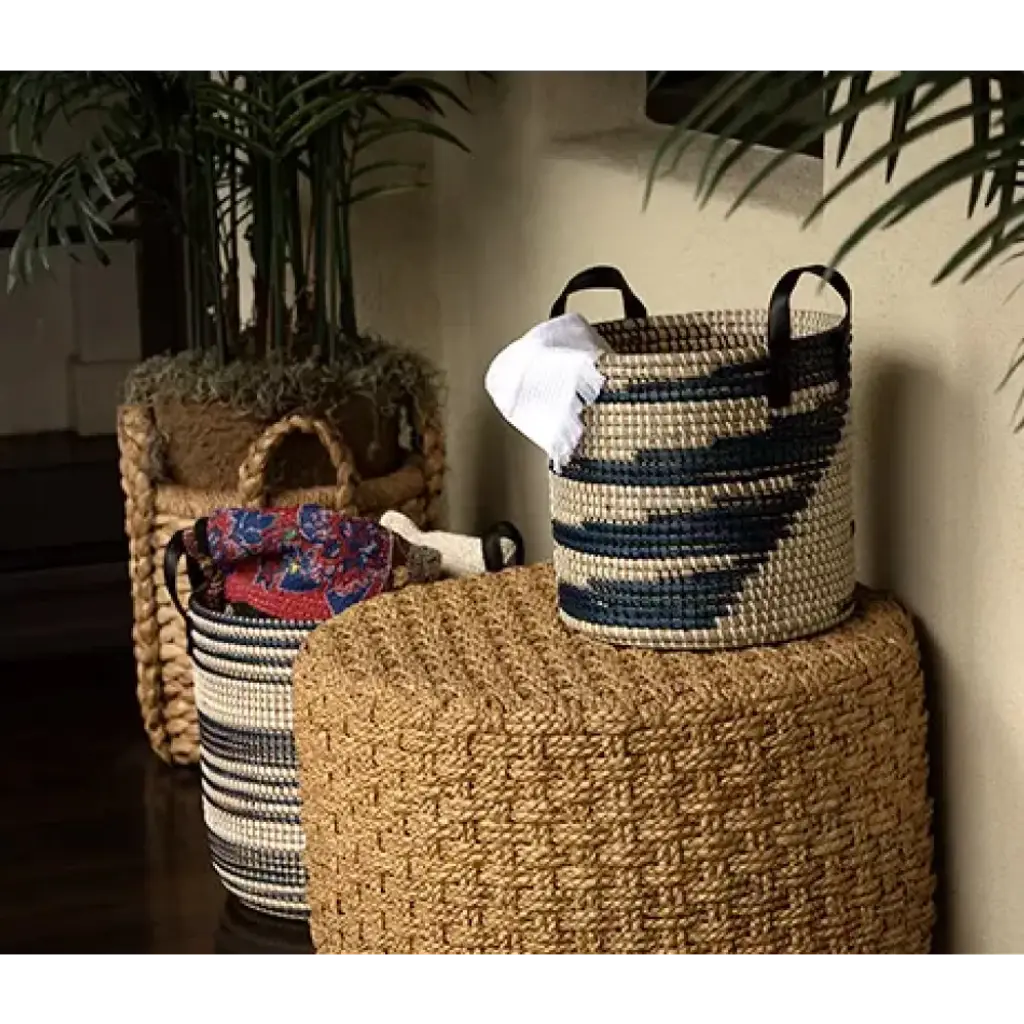 Olinda Dark Blue/natural Basket Basket: 15"d X 14.5"h, Small: 13"d X 12.5"h, Set Of 2