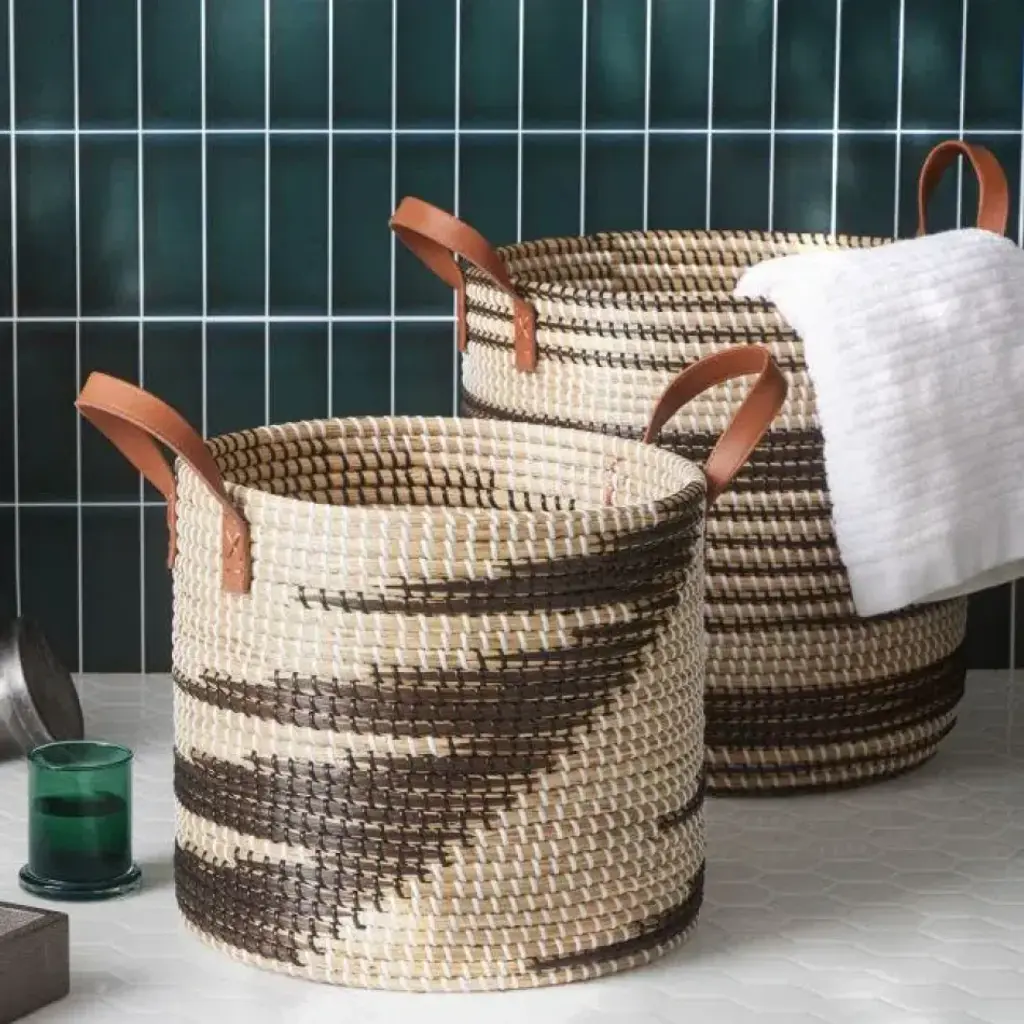 Nesting baskets in complementary stripe patterns. Leather handles. The designers at Pigeon & Poodle believe the details of a home are just as important as the furniture. A gorgeous toothbrush holder or handcrafted canister can elevate an entire bath, the perfect frame can heighten the feel of a whole space, and a good-looking storage basket can be your look’s missing link. With thoughtful design and top-notch craftsmanship, Pigeon & Poodle create home accessories with the care and attention typically reserved for larger pieces of décor.