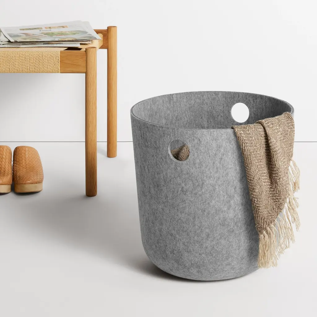 A friendly and eco-conscious solution for modern storage, the Olly Storage Basket from Blu Dot is as stylish as it is practical. This versatile basket is crafted from a soft yet structured felt, made from 70-90% recycled post-consumer polyester. The friendly, rounded form is perfect for tidying up all manner of household objects, from chunky knits to kids’ toys. A fusion of sustainable design and everyday utility, it’s a cheerful and hardworking addition to the contemporary home. Highlights: