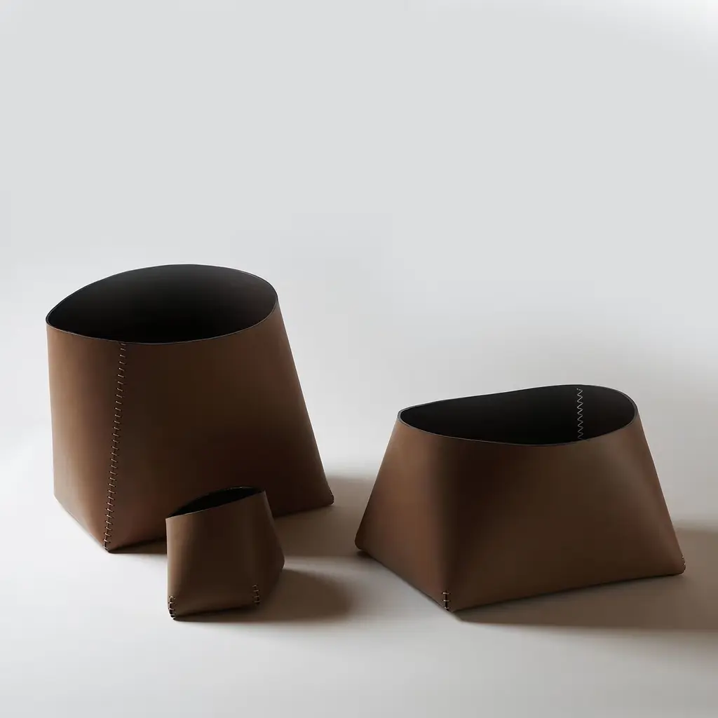 Clean profiles accented by a combination of dyed edges and contrasting stitching trace the essential and sophisticated silhouette of this precious leather basket. Part of the Organic Collection, it is made by folding and cutting a single leather sheet consisting of two layers for exceptional resistance and versatility. Multiple chromatic variants are available, please contact the Concierge for options.