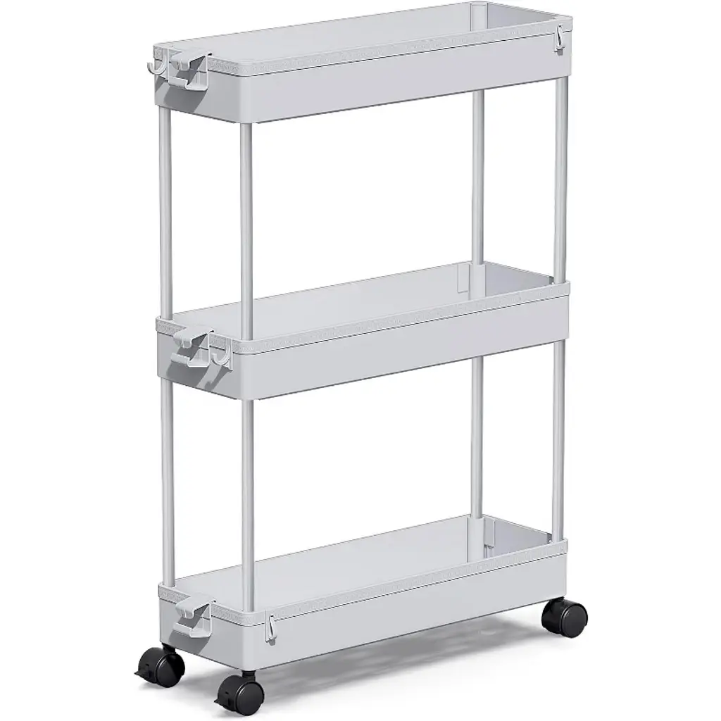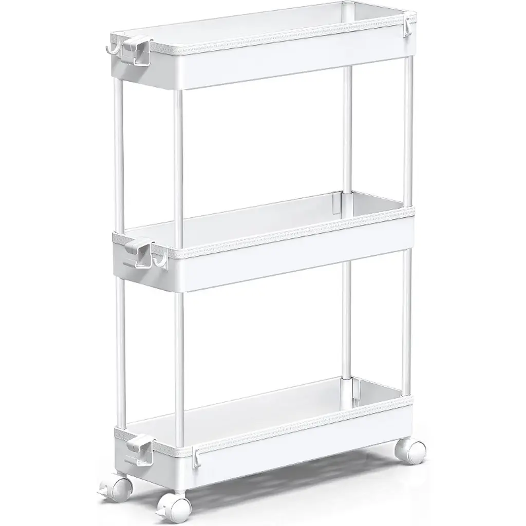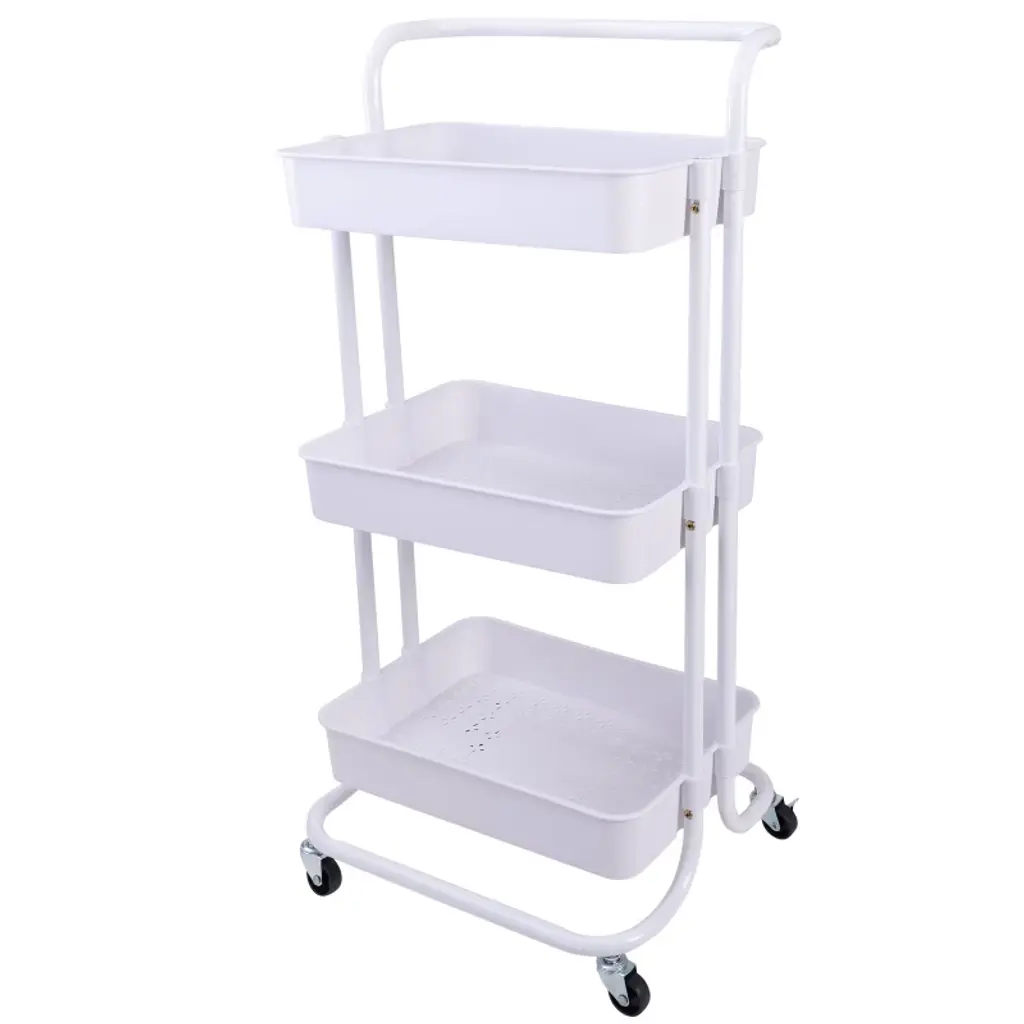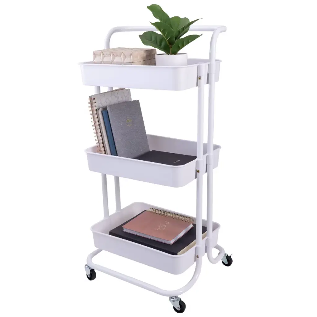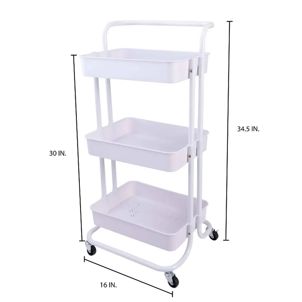 Organize It All 3 Tier Storage Rolling Metal Utility Cart With Basket And Wheels White