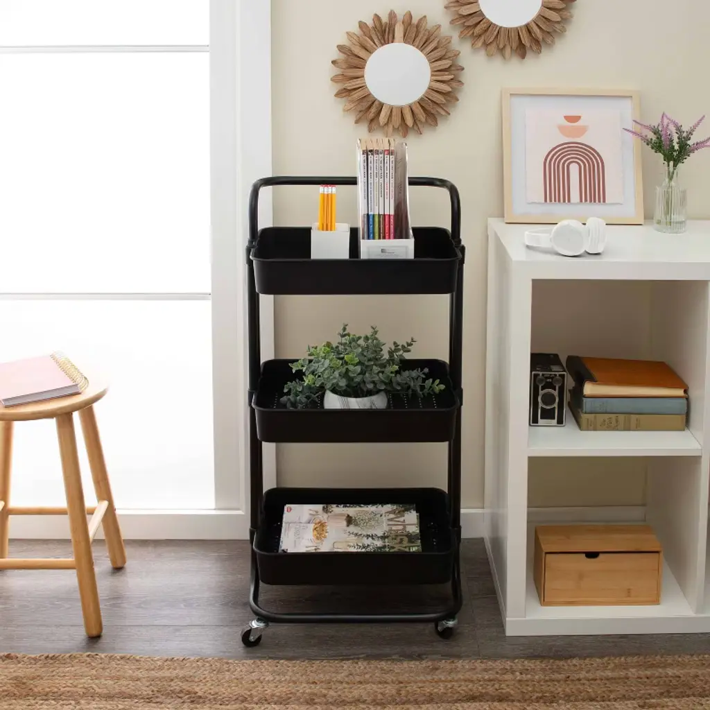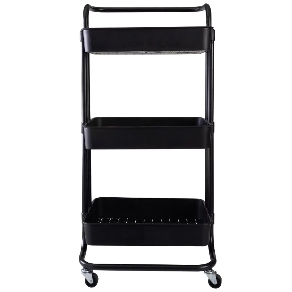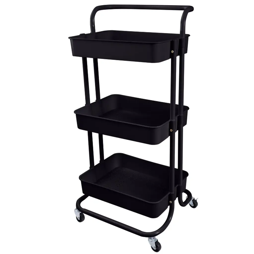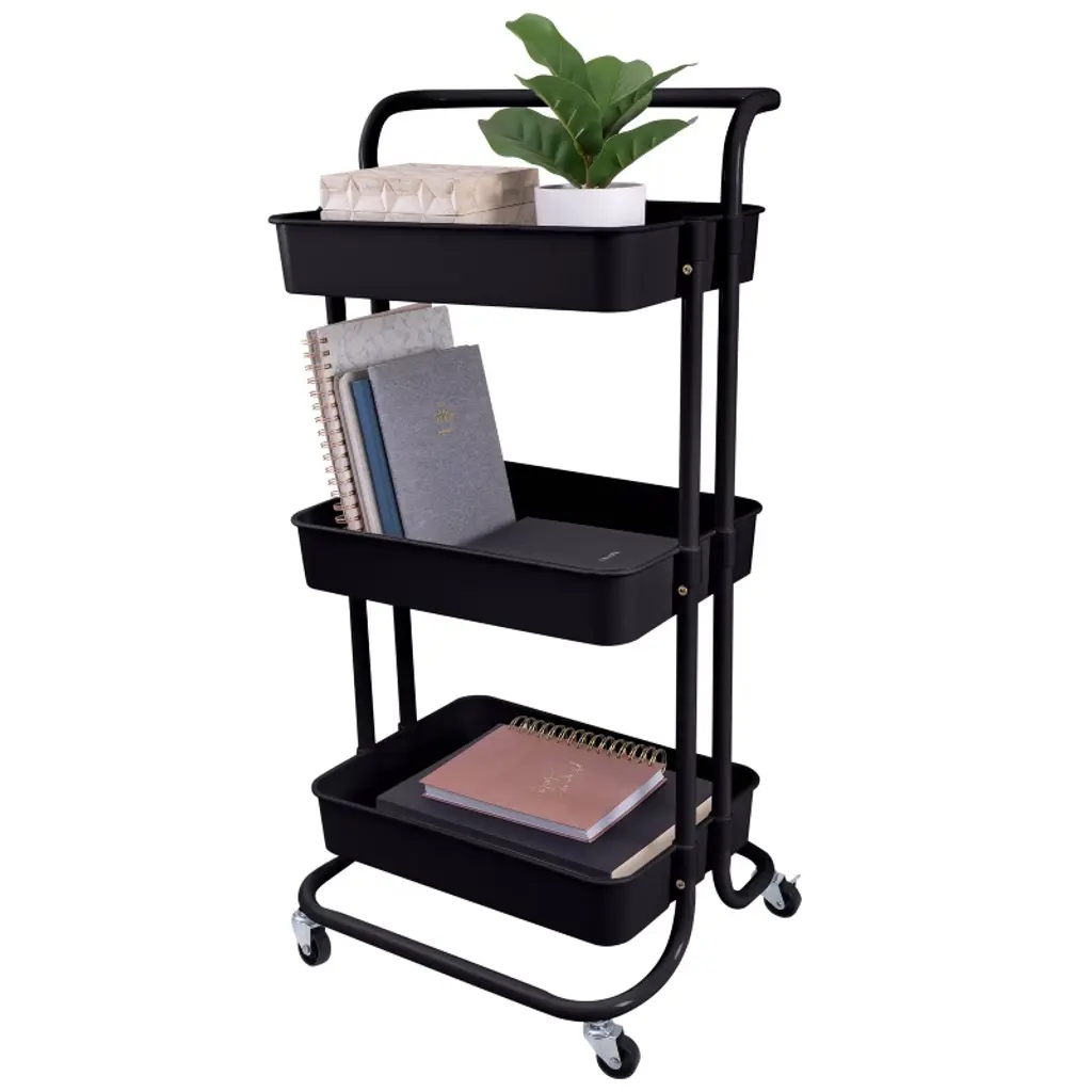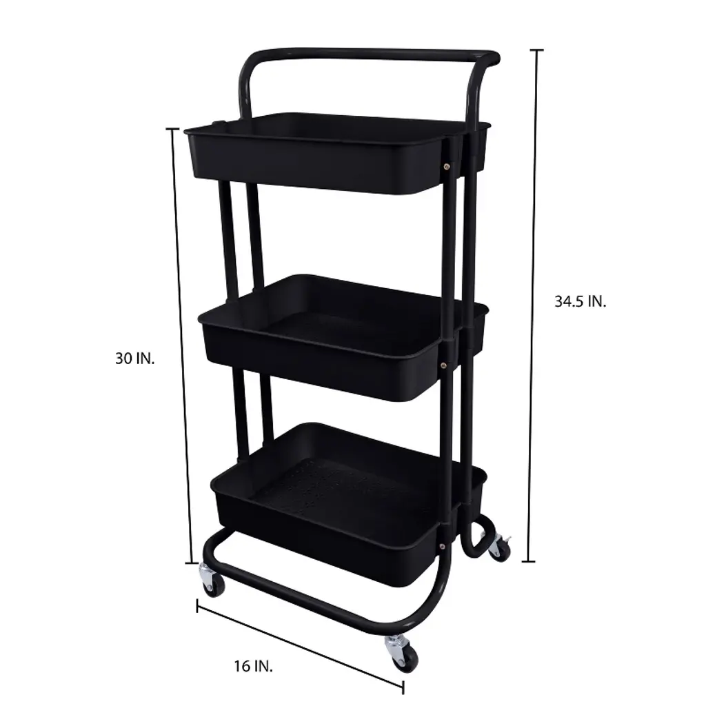 Organize It All 3 Tier Storage Rolling Metal Utility Cart With Basket Wheels Black