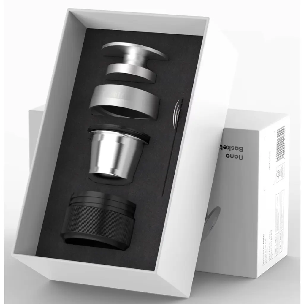 Upgrade your coffee brewing with the Nano Basket Plus—the ultimate accessory designed for professional coffee enthusiasts. Crafted from food-grade stainless steel, it guarantees durability and ensures a safe brewing environment, taking your coffee journey to new heights with significant enhancements. Experience the true art of coffee-making as it unlocks the full potential of your espresso machine, letting you savor the results of your mastery.Pair it with the remarkably small yet powerful 7500mAh Nano portable espresso brewer, featuring a gold-ratio design and an upgraded pumping system. Simply add hot or cold water with your favorite capsules or fresh ground coffee, and with just one tap, brew exquisite espresso anytime, anywhere—day or night, without being limited by water temperature or location.Elevate your coffee experience, indulge your creativity, and immerse yourself in a world of unparalleled coffee enjoyment. Discover enhanced possibilities with the perfect duo for the ultimate coffee ritual.
