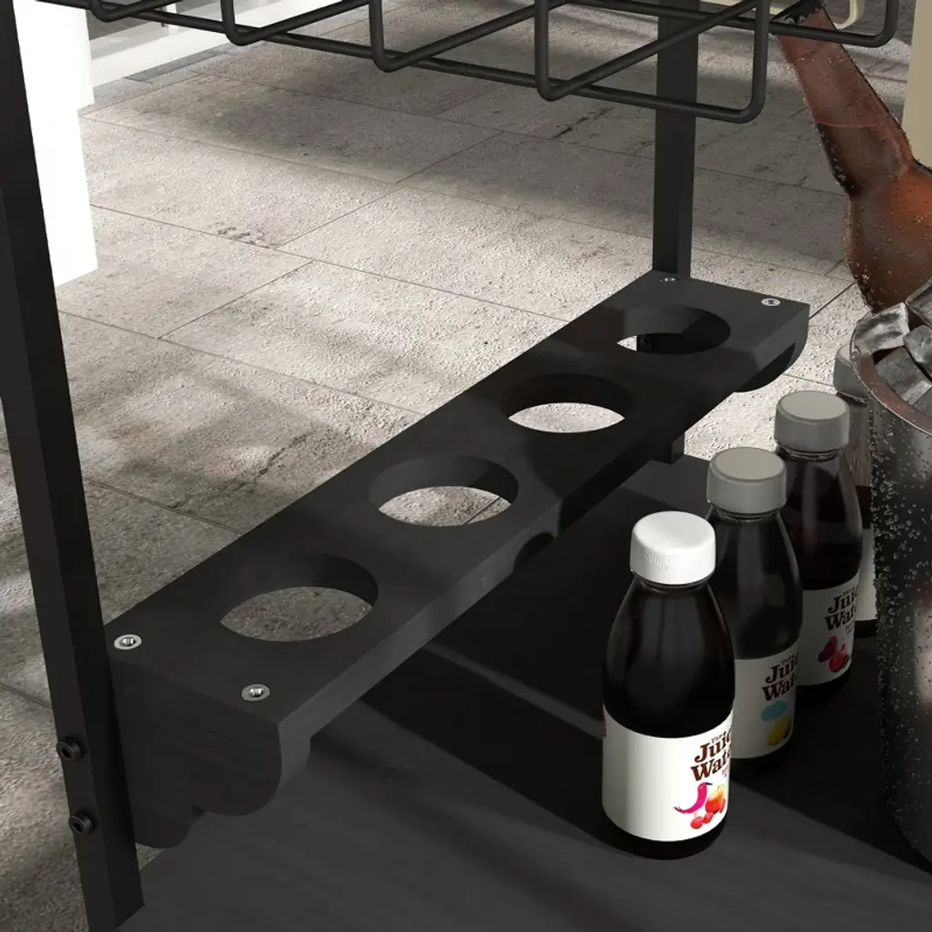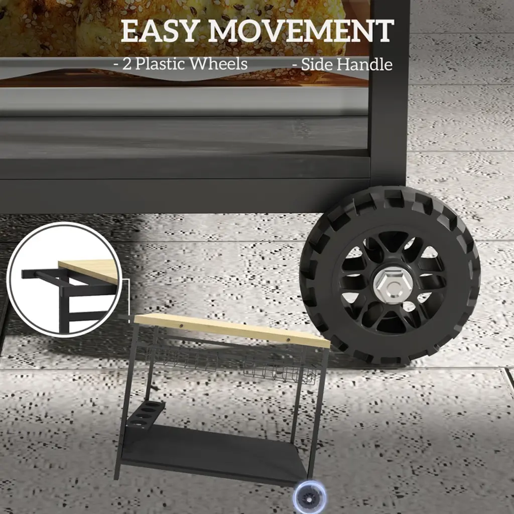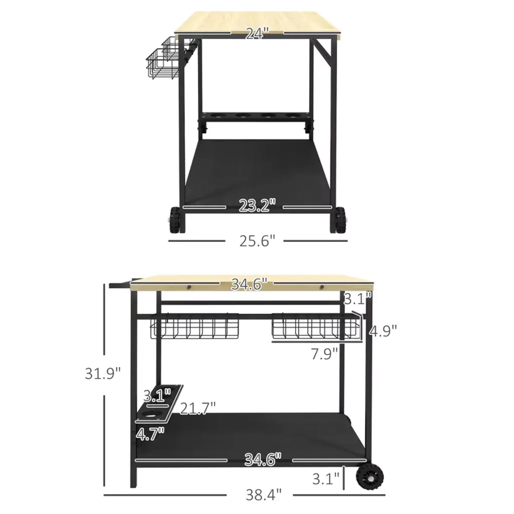 Outsunny Outdoor Bar Cart, Patio Rolling Serving Cart With Wheels, Side Handle, 2 Baskets, 4 Wine Holders For Garden, Dining Room, Natural