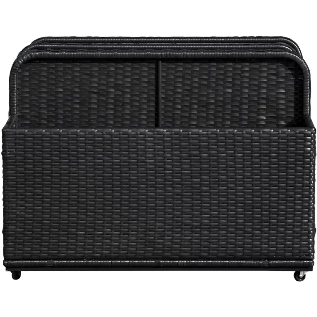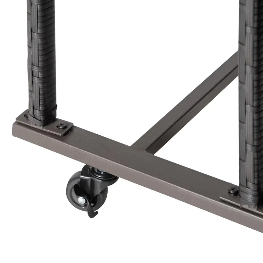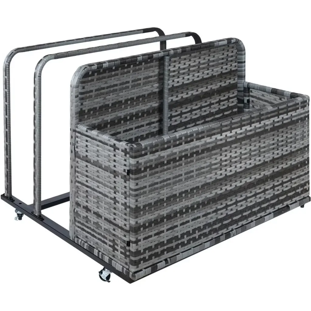 An organizer for indoor or outdoor this rattan storage cart is great for garden tools, pool toys, and more. Placed poolside, down on the deck, or out in the garden, it's a great option for outside. This rattan storage basket is made of handwoven PE rattan wicker and reinforced with a powder-coated steel frame for outdoor use. The organizer features four wheels, two of which are rotating wheels so you can cart off floaties when and where you need them.
