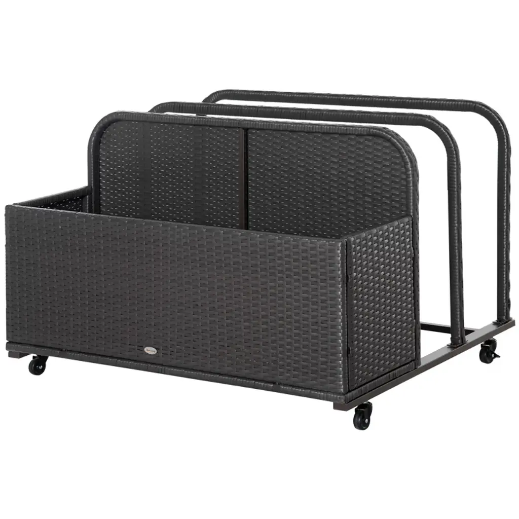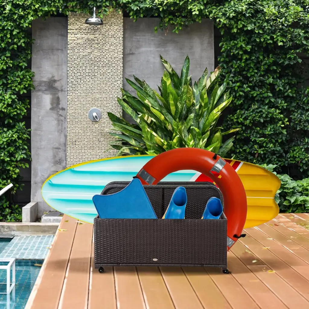 Outsunny Patio Wicker Pool Float Storage Basket, Outdoor Pe Rattan Pool Caddy With Rolling Wheels For Floats, Noodles, Paddles, Towels, Mix Brown