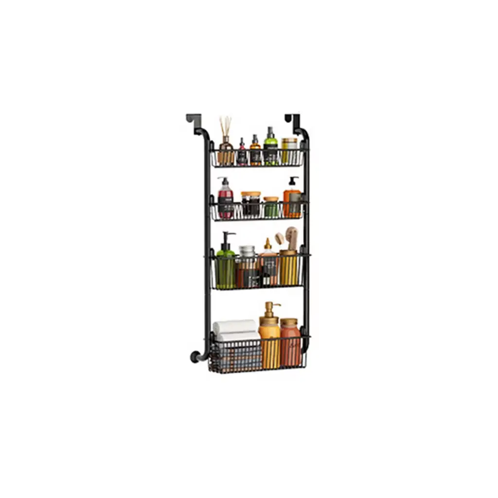 Over The Door Organizer, Pantry Organizer Rack, Metal Over Door Hanging Organizer With Adjustable Baskets For Home Kitchen 4 Layers Black